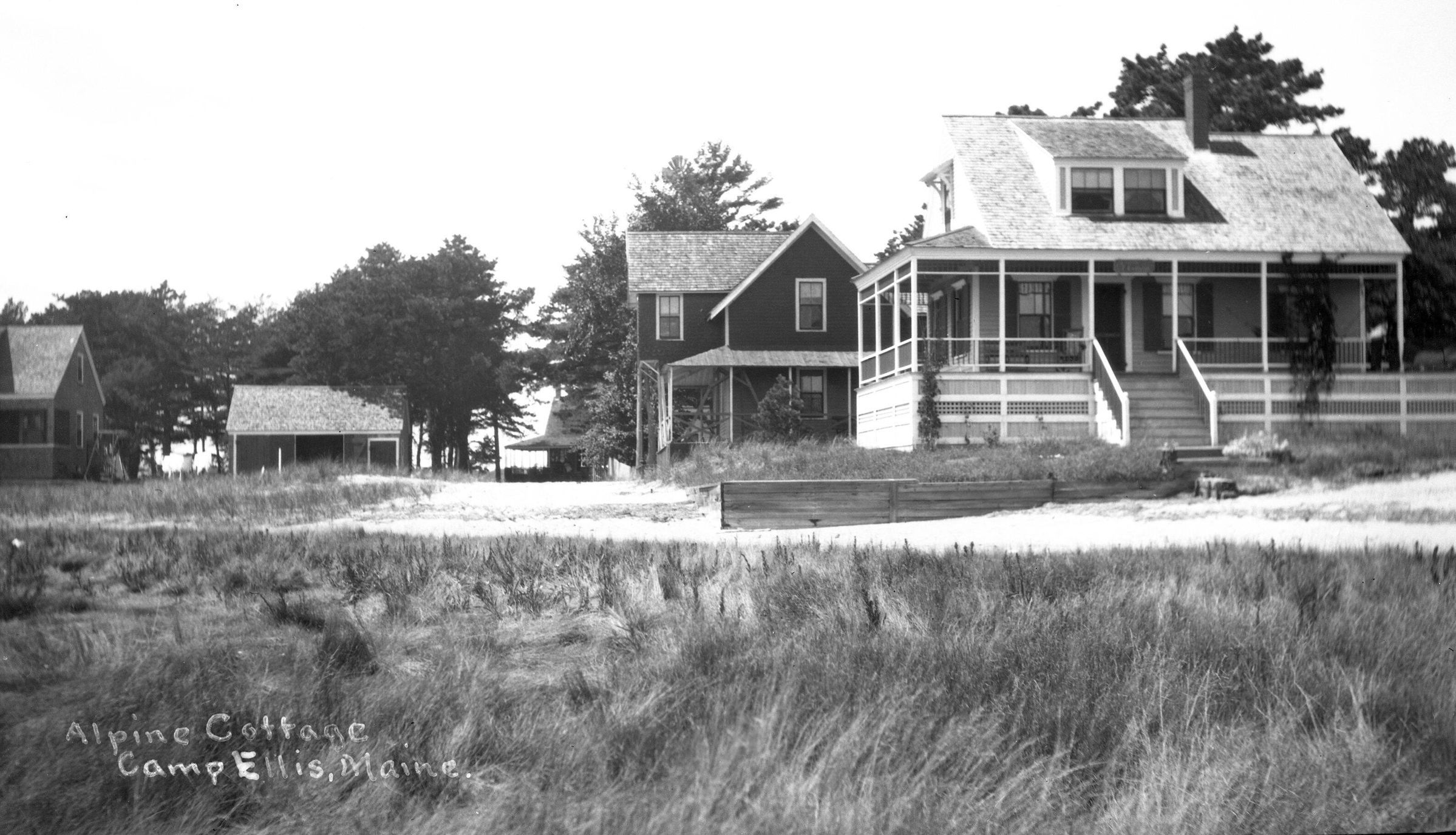 Negative print photo of the Alpine Cottage in Camp Ellis, ME.