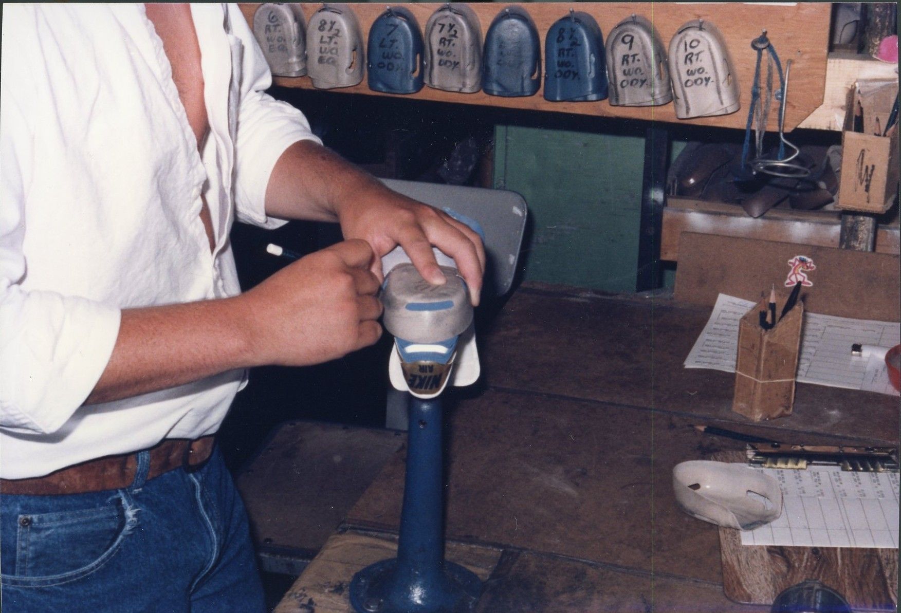Color print photograph of Saco Nike Factory taken in July (or later), 1985. The Nike Factory located in Saco, Maine on Factory Island closed in November of 1985, about 8 years after it opened in 1978. The stated reason for closing was due to the increased labor cost and fringe benefits. After closing multiple American factories Nike focused on importing from Asia. 500 employees worked at the Saco Nike Factory, before shutting down.