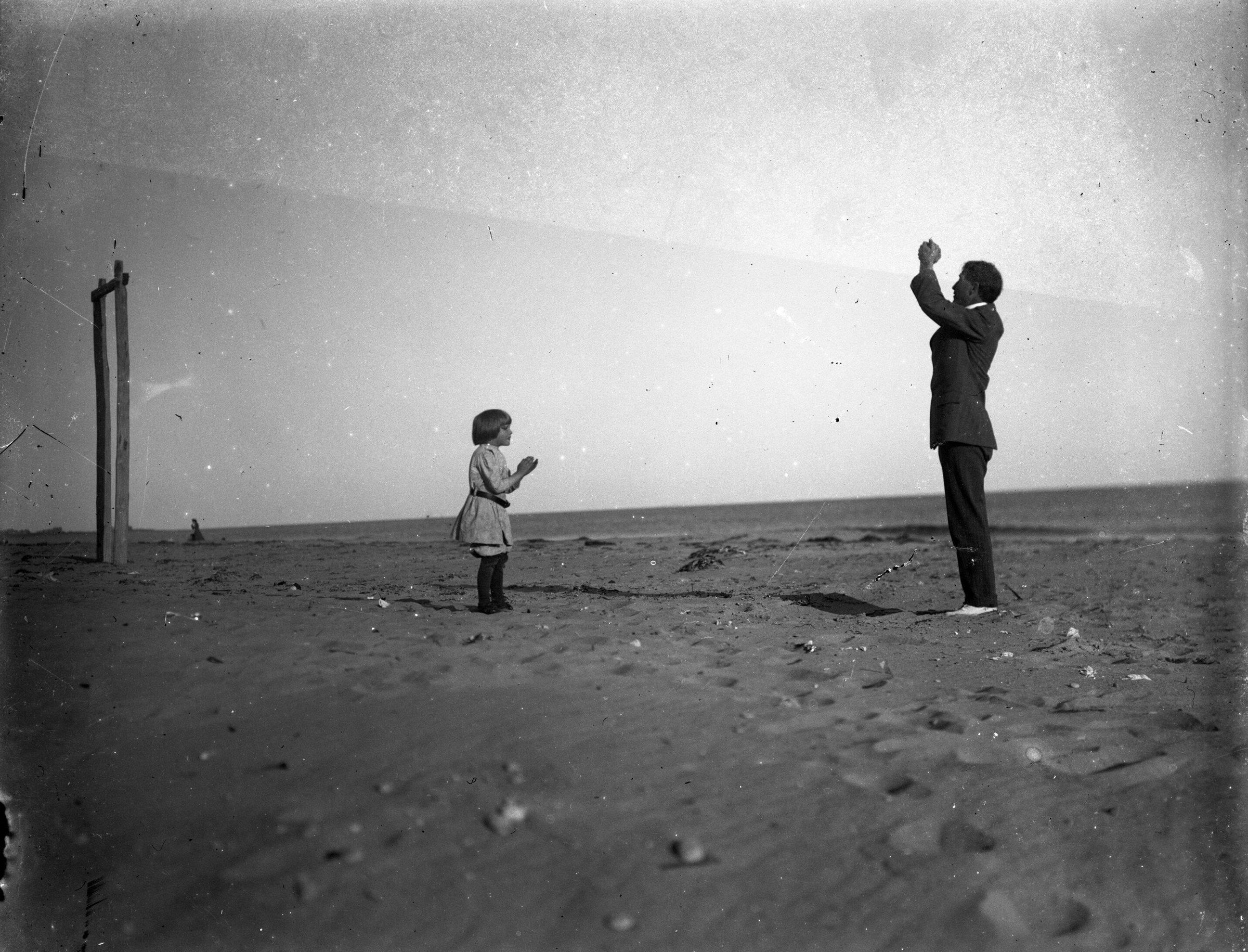 Glass plate negative photo of son and father: Herbert Woodworth Bradbury (1911-1916), and Gibeon Bradbury, Jr.