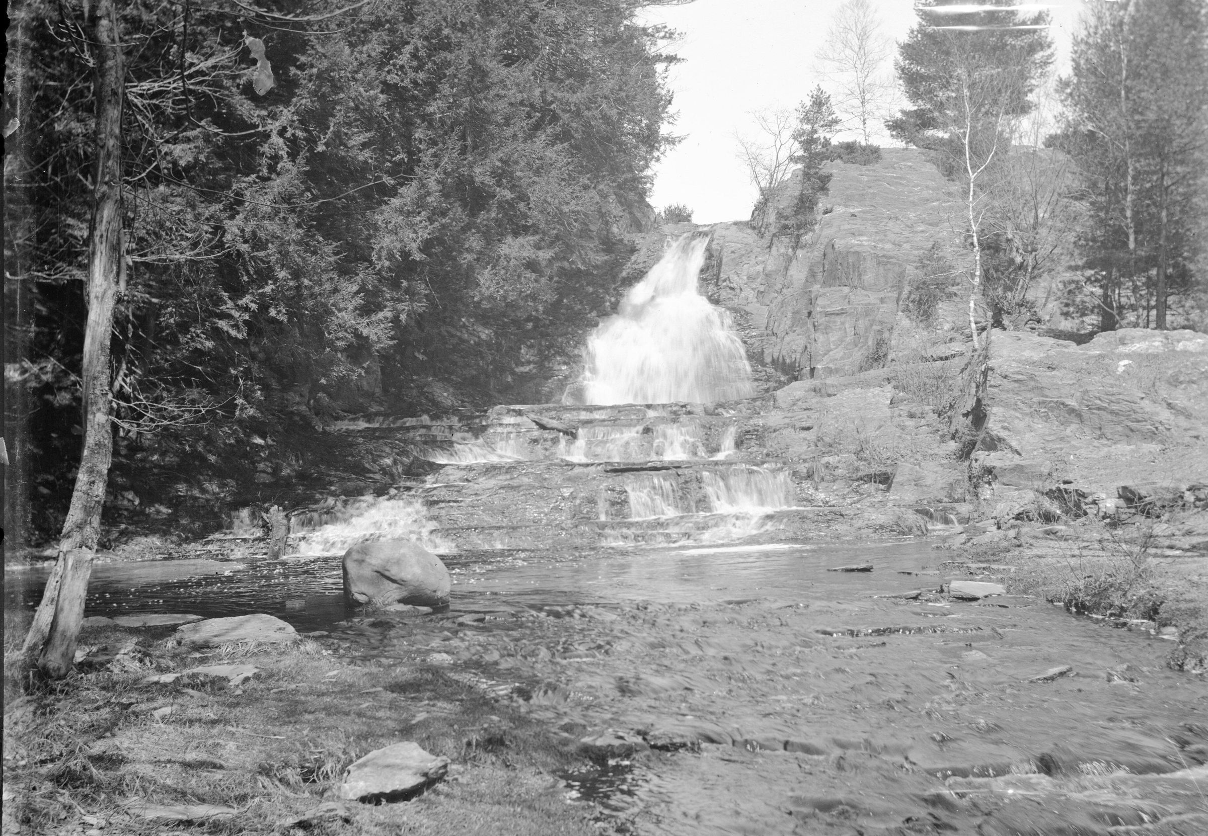 Glass plate negative photo of Cascade Falls in Saco, ME.