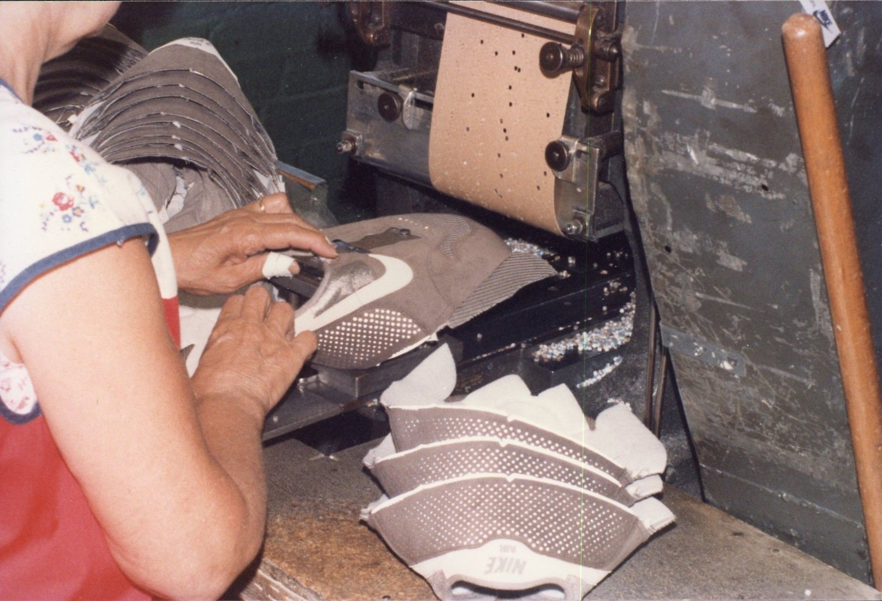 Color print photograph of Saco Nike Factory taken in July (or later), 1985. The Nike Factory located in Saco, Maine on Factory Island closed in November of 1985, about 8 years after it opened in 1978. The stated reason for closing was due to the increased labor cost and fringe benefits. After closing multiple American factories Nike focused on importing from Asia. 500 employees worked at the Saco Nike Factory, before shutting down.