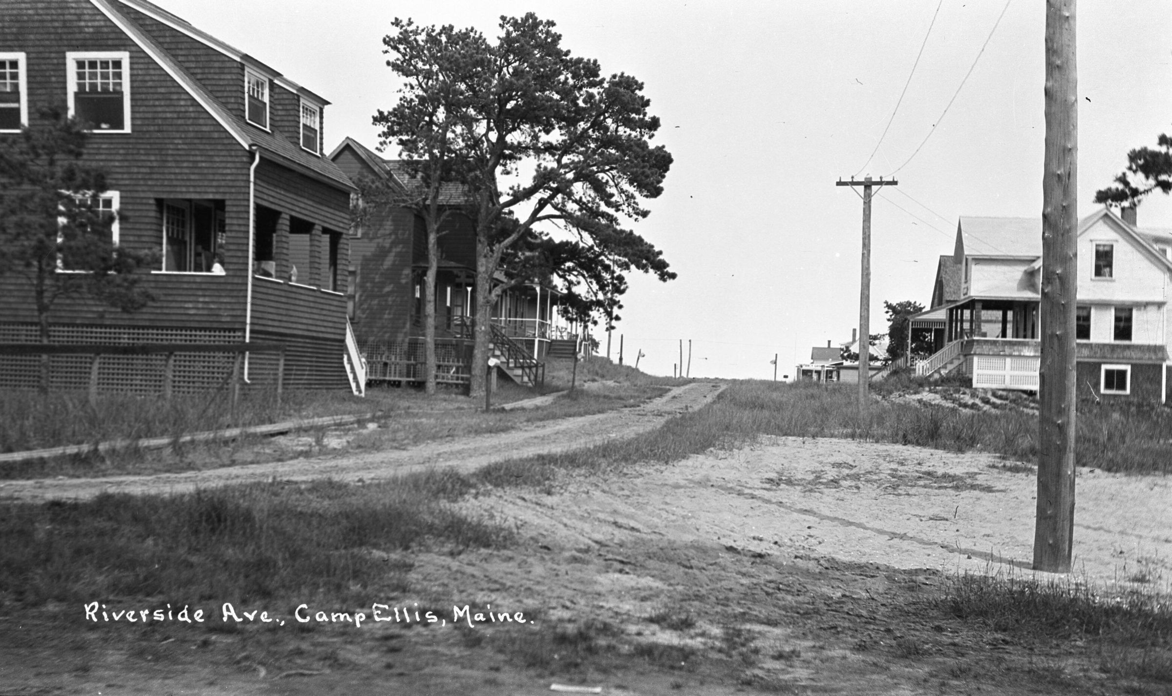 Negative print photo of Riverside Ave. in Camp Ellis, ME.