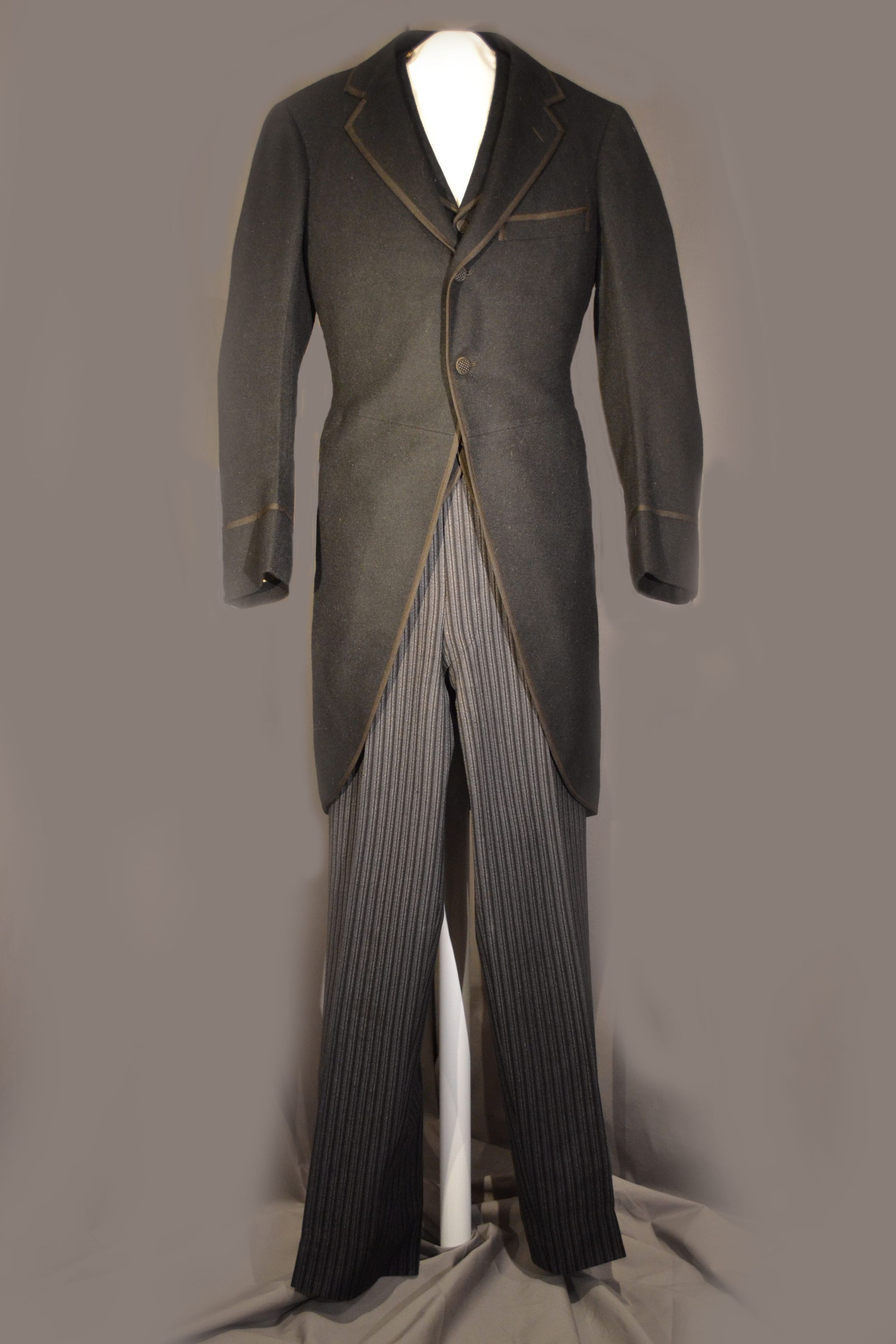 The morning suit, also sometimes called "tails," originated in the 1880s. The coat evolved from the frock coat, a formal daytime garment worn by the upper classes in the late 18th century and the sack suit, which was a more casual clothing option. The morning coat was a compromise between the two styles, balancing formality and practicality.