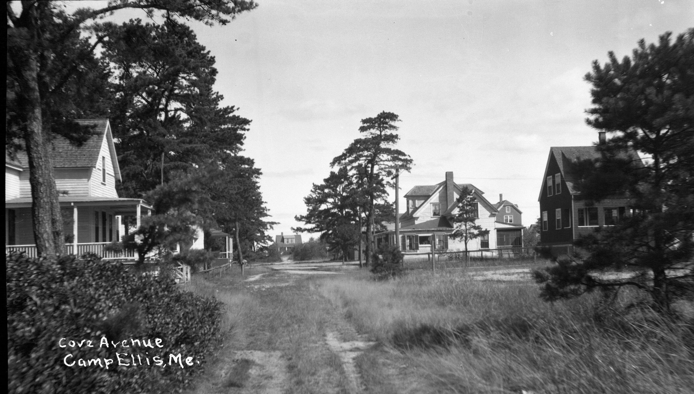 Negative print photo of Cove Avenue at Camp Ellis, ME.