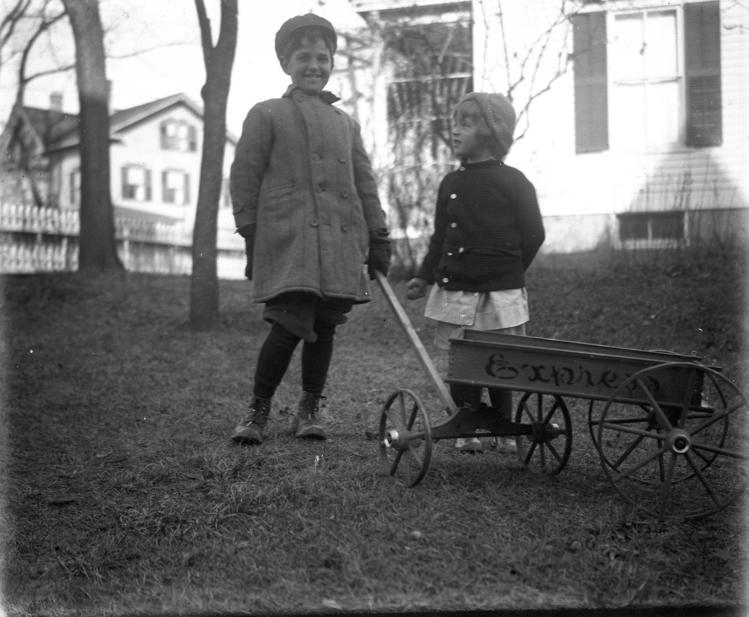 Glass plate negative photo of brothers Charles A. Bradbury (1903 - ) on the left and Herbert W. Bradbury (1911-1916) on the right.Made/Created