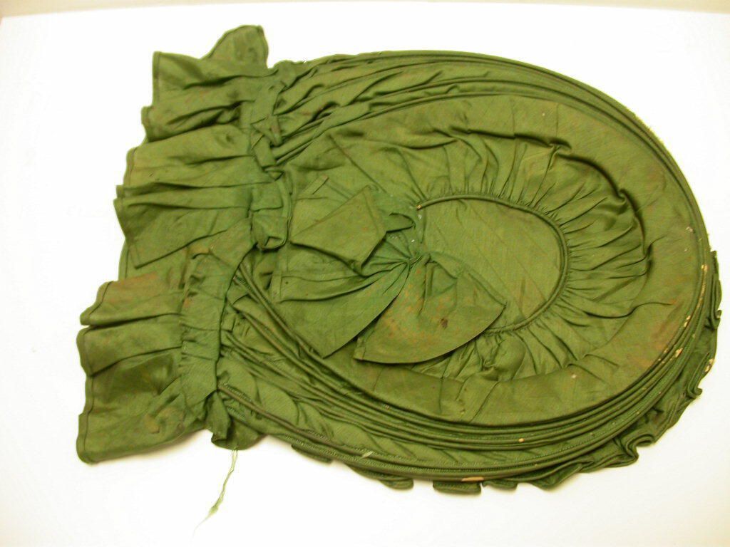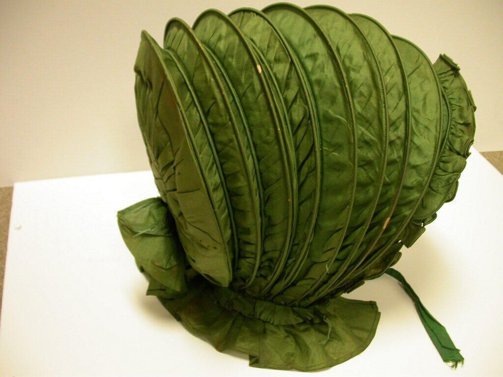 The name for the style comes from caleche, the French word for carriage, because the collapsible cane structure resembled the hood of a carriage. Many calashes were treated to be waterproof, although this example shows no signs of such a treatment.