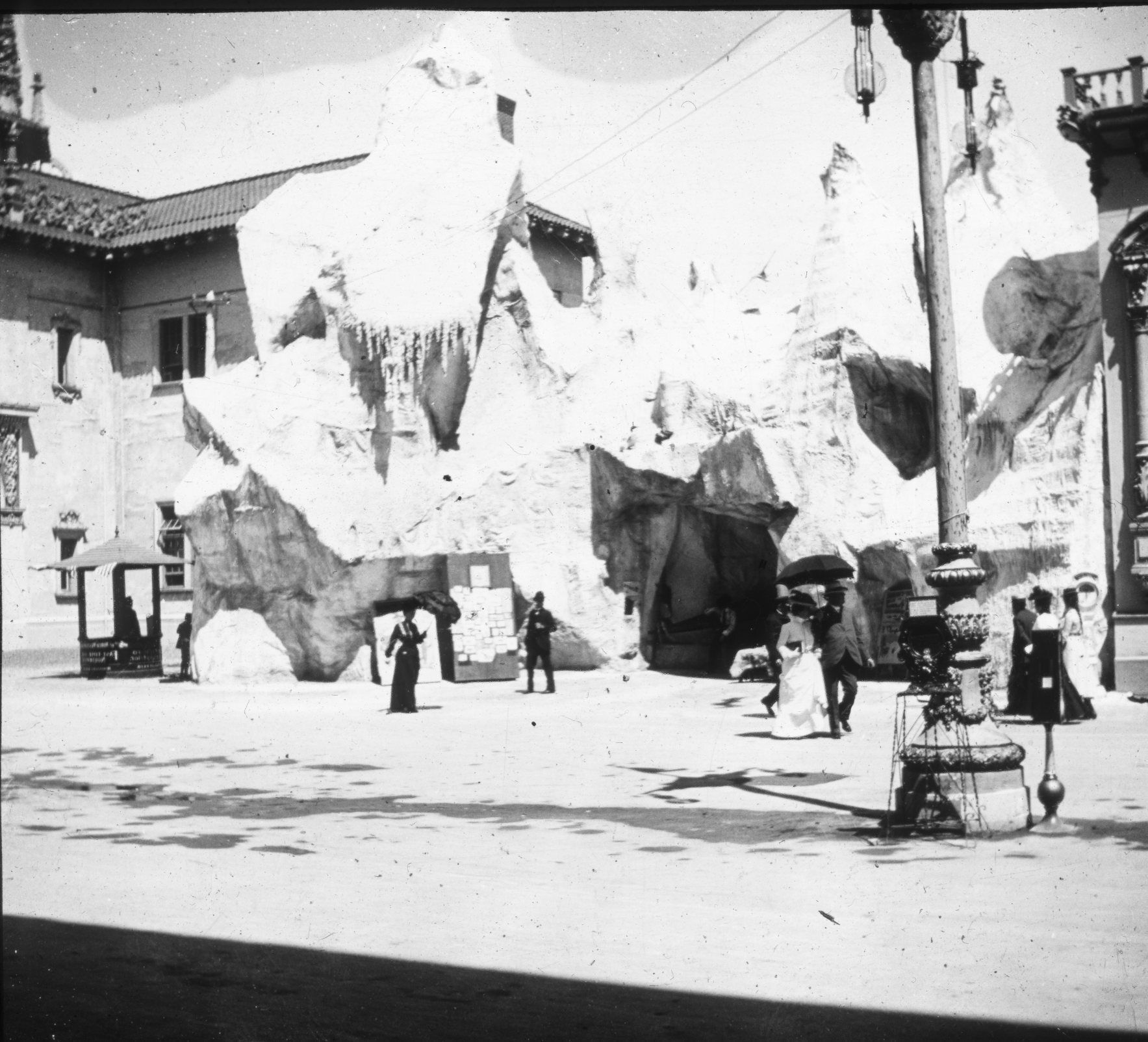 Glass lantern slide of the Eskimo Village attraction at the Pan American Exposition in Buffalo, New York in 1901.