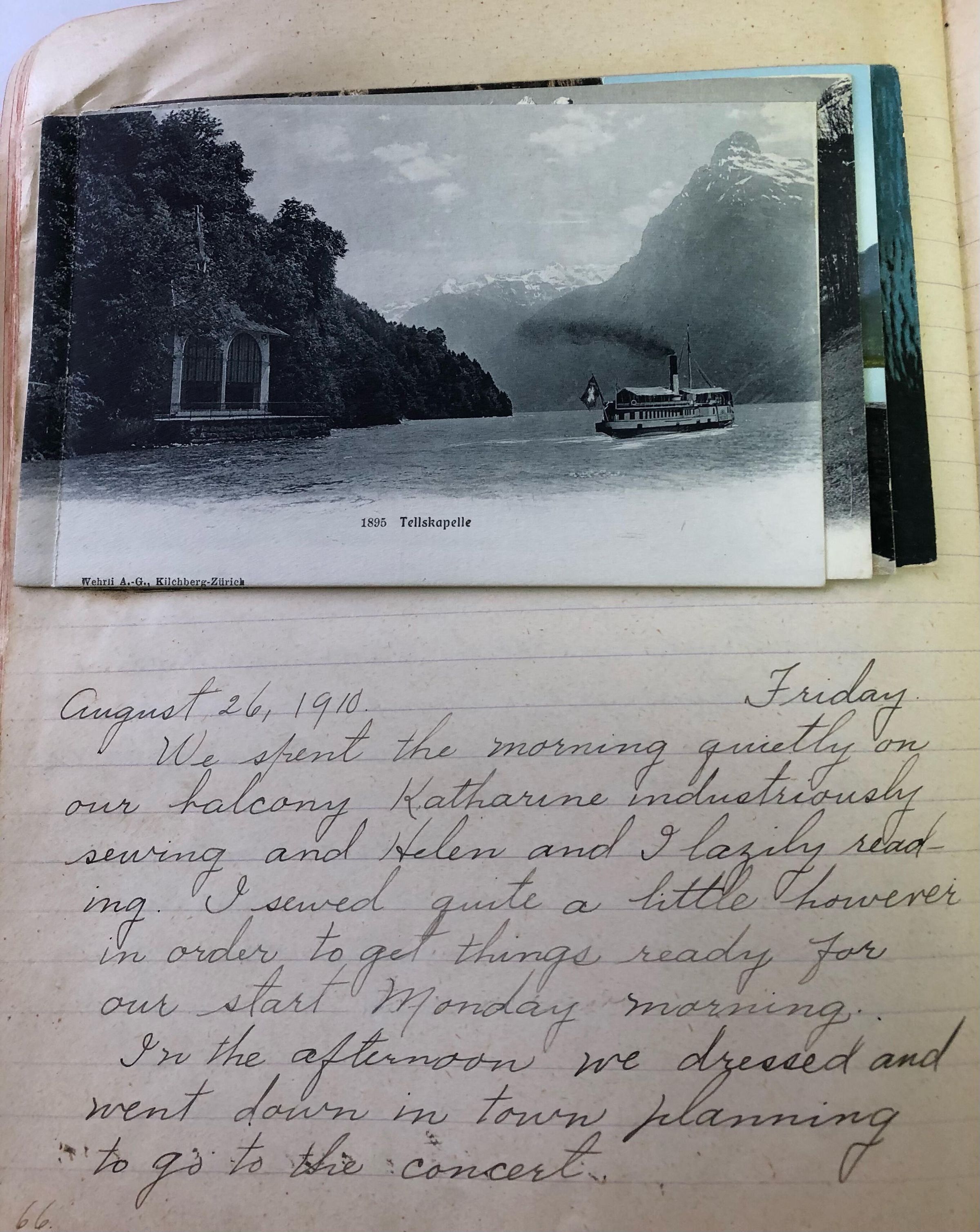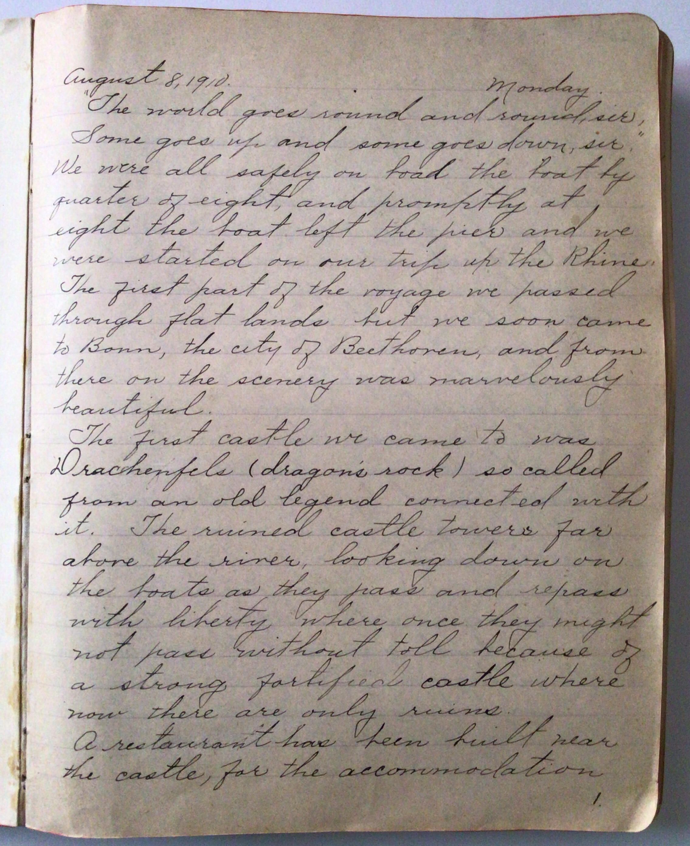 Volume 2 of the travel diaries of Ethelinda Deering Frey, Cologne, August 8, 1910 to Territet, Switzerland, October 2, 1910