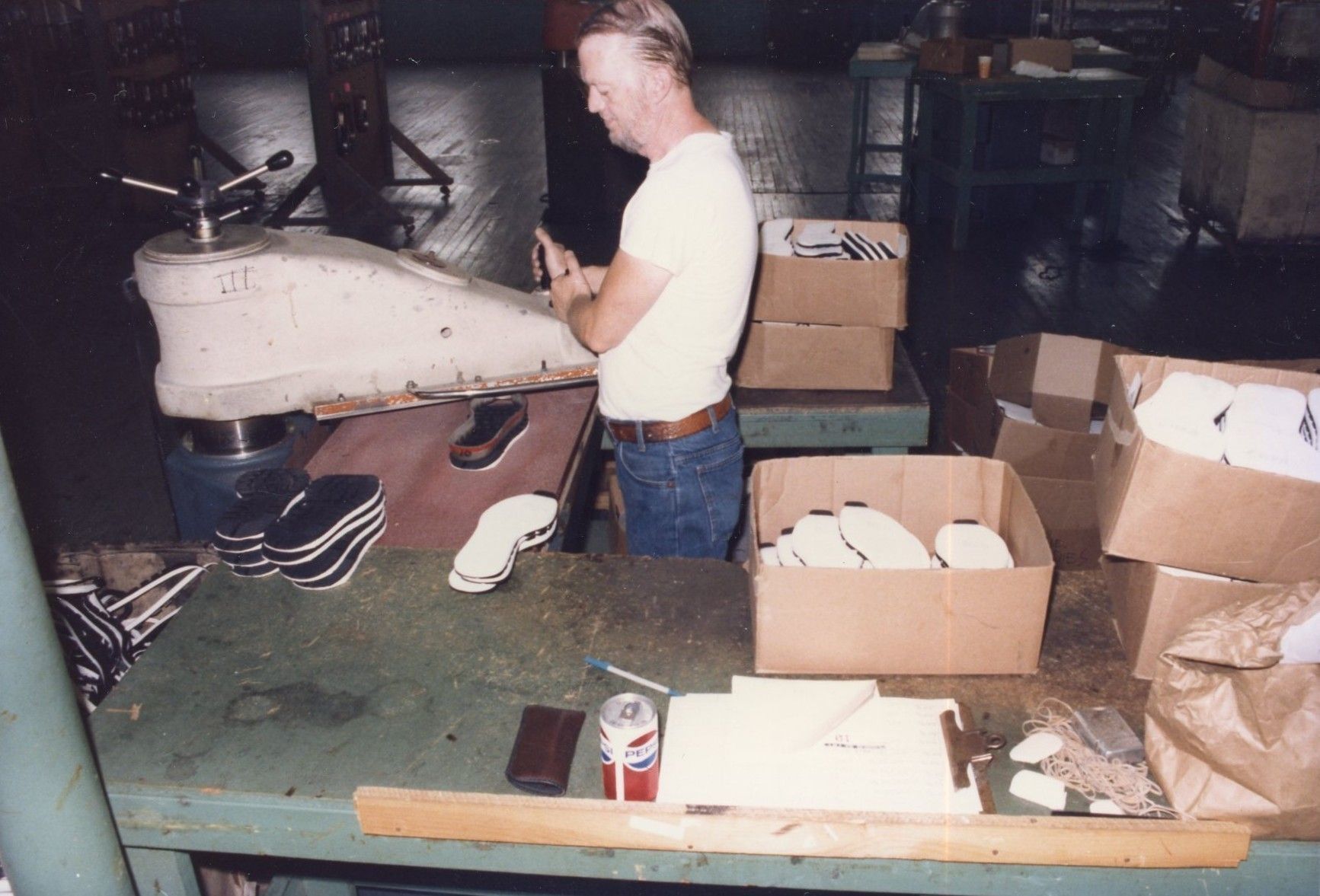 Color print photograph of Saco Nike Factory taken in July (or later), 1985. The Nike Factory located in Saco, Maine on Factory Island closed in November of 1985, about 8 years after it opened in 1978. The stated reason for closing was due to the increased labor cost and fringe benefits. After closing multiple American factories Nike focused on importing from Asia. 500 employees worked at the Saco Nike Factory, before shutting down.
