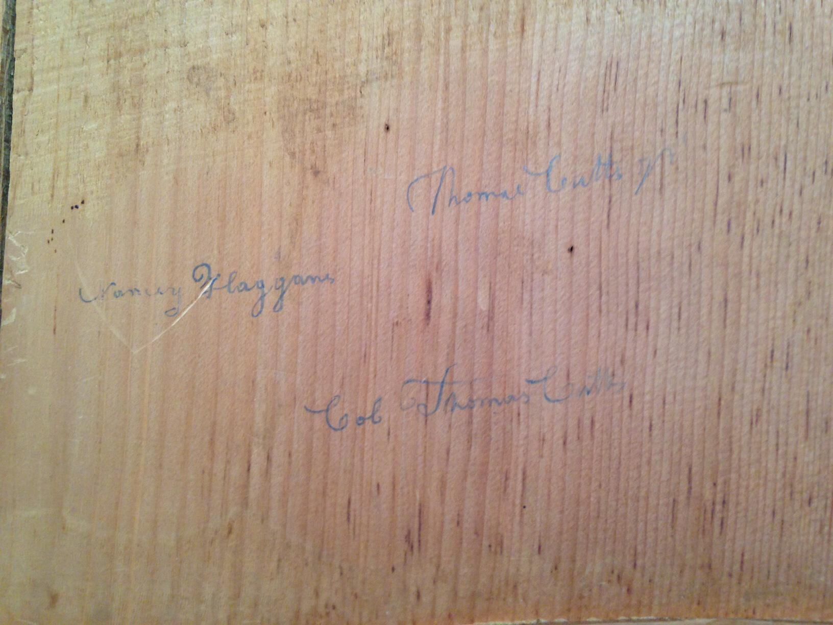 In the 18th century, desks, or “bureau desks” as they were sometimes called, were meant to be useful: a place to store valuables such as jewelry, seals, or money; to write letters, file important documents, and keep business records, all in one piece of furniture that was as impressive to look at as the customer could afford. Not surprisingly, the desk donated to the York Institute by George Addison Emery in 1934, descended through the family of one of the region’s consummate businessmen, Col. Thomas Cutts. The other desk, which was “discovered” at Thornton Academy, has much later pencil inscriptions “Col. Thomas Cutts”, “Thomas Cutts, Jr.” and “Nancy Haggans,” although any history in the Cutts family is now lost. Colonel Thomas Cutts did have two mahogany desks in his 1821 probate inventory; one was in the lower west room and the other in the north lower room and parlor. They were each valued at $8.00. However, the addition of Nancy Haggans’ (or Haggens/Higgins) name is curious as she and her brother, Maj. Tilly Haggens, were fictionalized characters in Sarah Orne Jewett’s 1901 novel, The Tory Lover. The names were shared by actual residents of South Berwick, Maine, who were related although not as siblings.