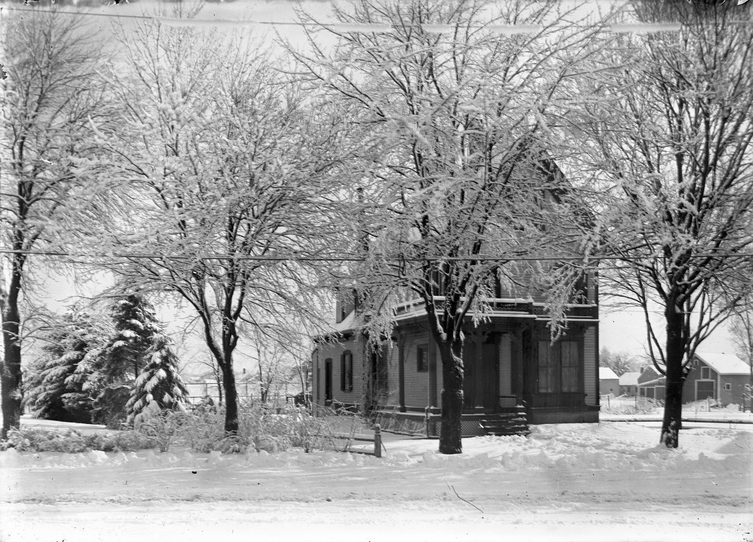 Glass plate negative photo of 81 North Street, Saco. Also known as the Hannah Leland house. There is a postcard of this same image in the Moody postcard collection in the Dyer Library Archives - "March 1911" is written on the postcard.