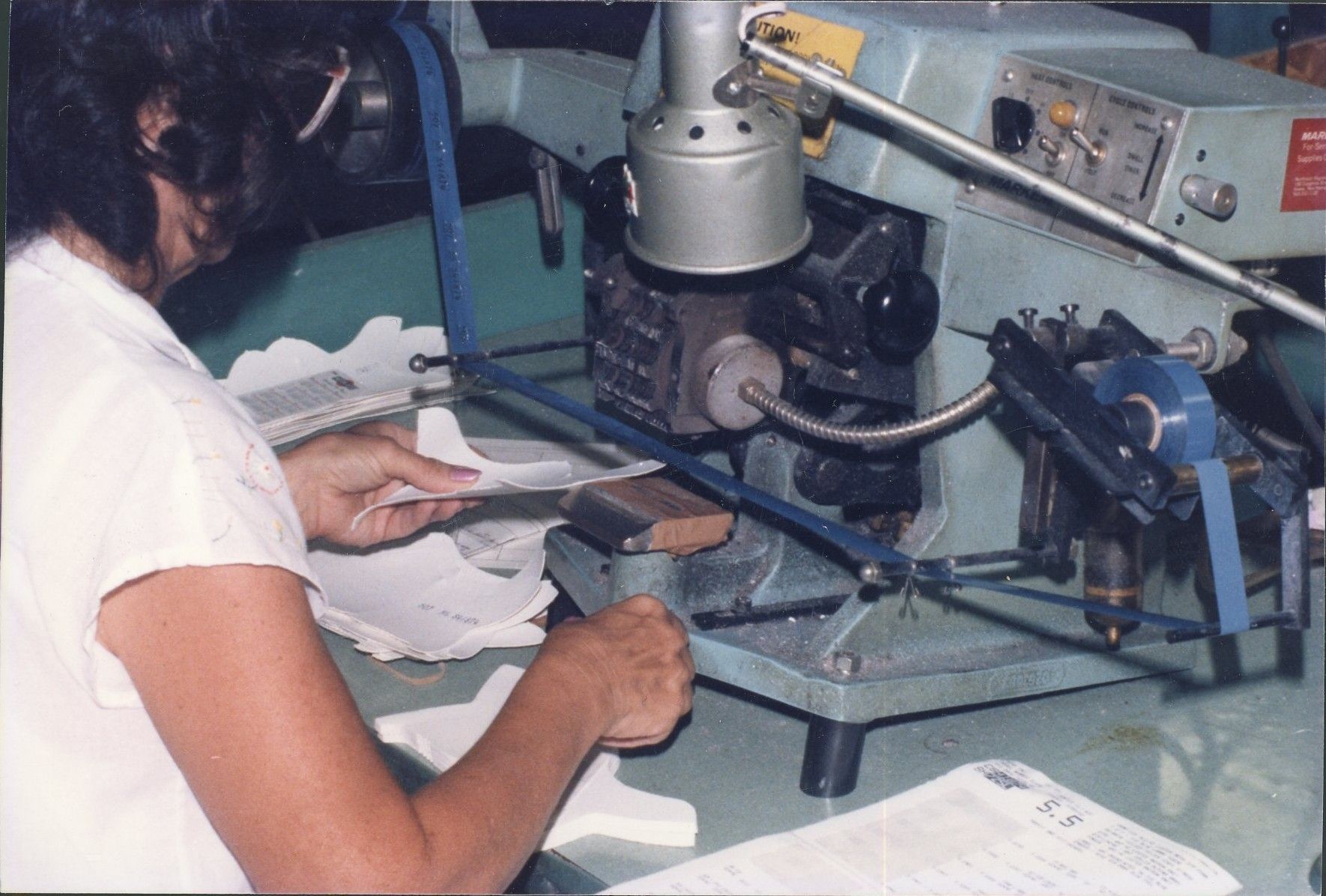 Color print photograph of Saco Nike Factory taken in July (or later), 1985. The Nike Factory located in Saco, Maine on Factory Island closed in November of 1985, about 8 years after it opened in 1978. The stated reason for closing was due to the increased labor cost and fringe benefits. After closing multiple American factories Nike focused on importing from Asia. 500 employees worked at the Saco Nike Factory, before shutting down.