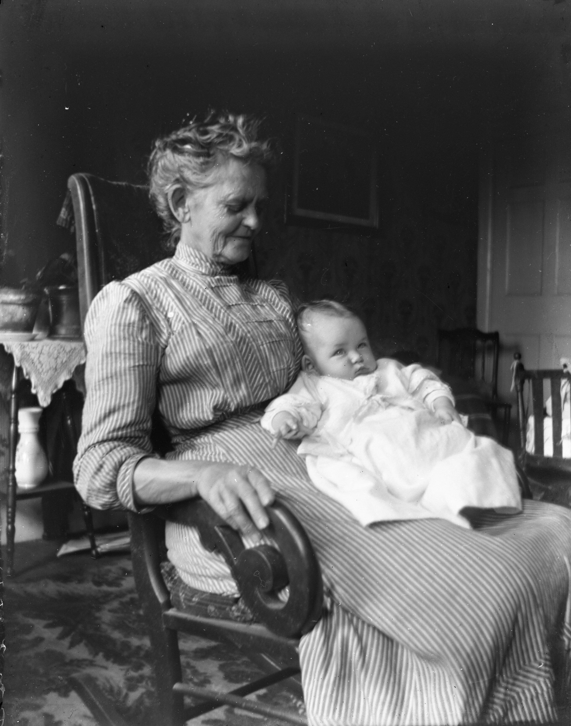 Glass plate negative photo of Sarah Lane Hobbs (1848 - 1935) and Beatrice Caroline Hobbs (1921 - 2012), taken circa 1921.