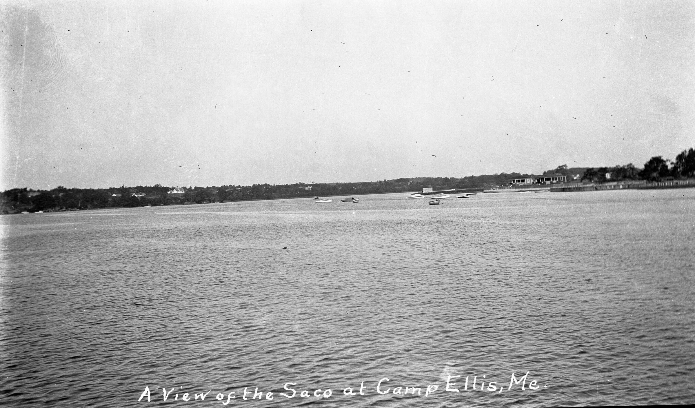 Negative print photo of the mouth of the Saco River at Camp Ellis, ME.