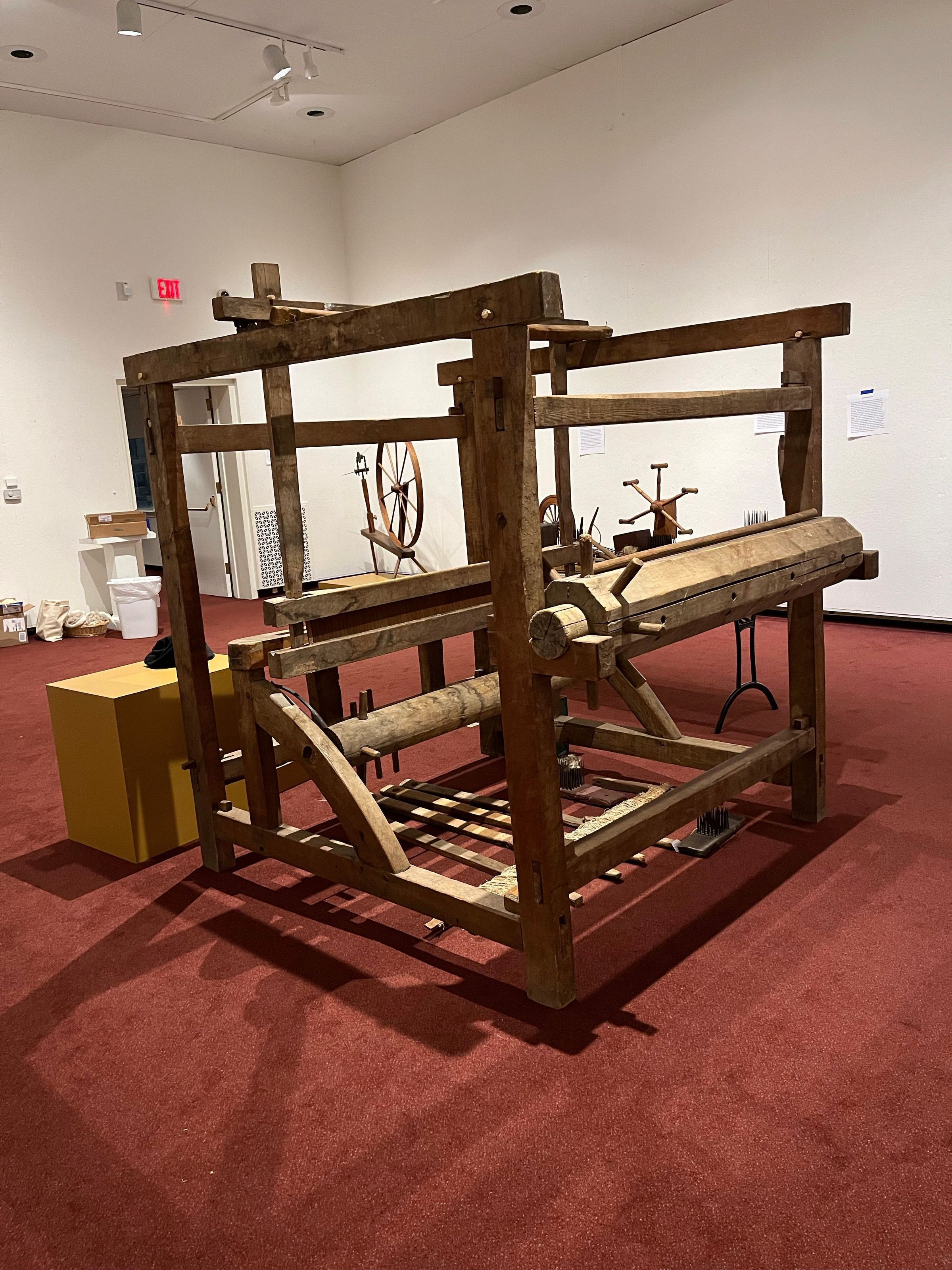 Looms have at least two harnesses, through which the warp threads pass. The harnesses are connected to treadles. By stepping on the treadles, the harnesses are lifted up and down, creating a passage in the warp, known as a shed, for the shuttle to travel through. The shuttle is thrown by hand from one side to the other. After each passage, the weft was driven into the cloth by means of a beater, the bar that also holds the reed. Label Type