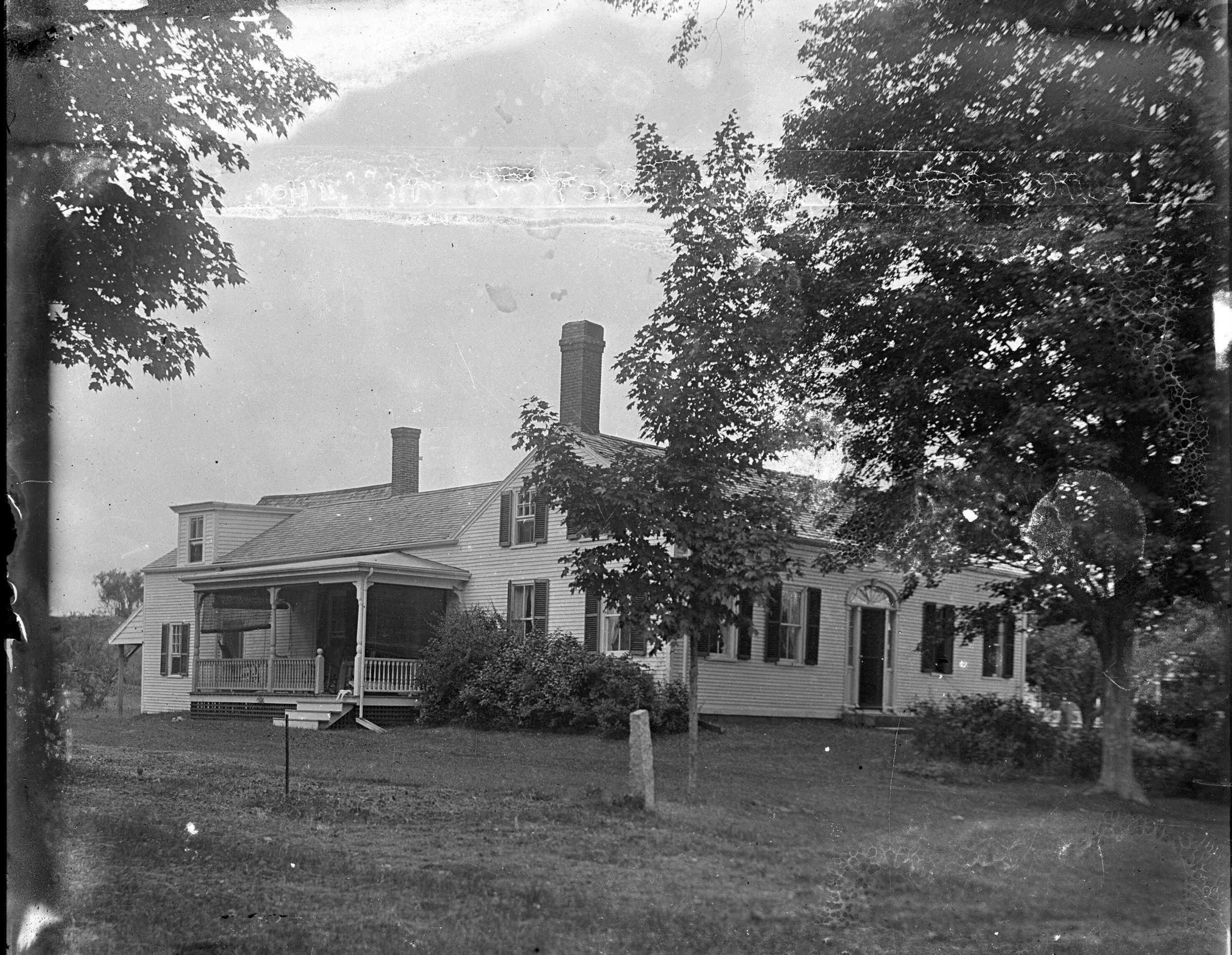 Glass plate negative photo of 12 Salmon Falls Rd., Hollis, ME. This house sits to the left of Quillcote, Kate Douglas Wiggin's house. House identified courtesy of the Buxton-Hollis Historical Society. The house is included in a list of historic houses that make up the Salmon Falls Historic District.Made/Created