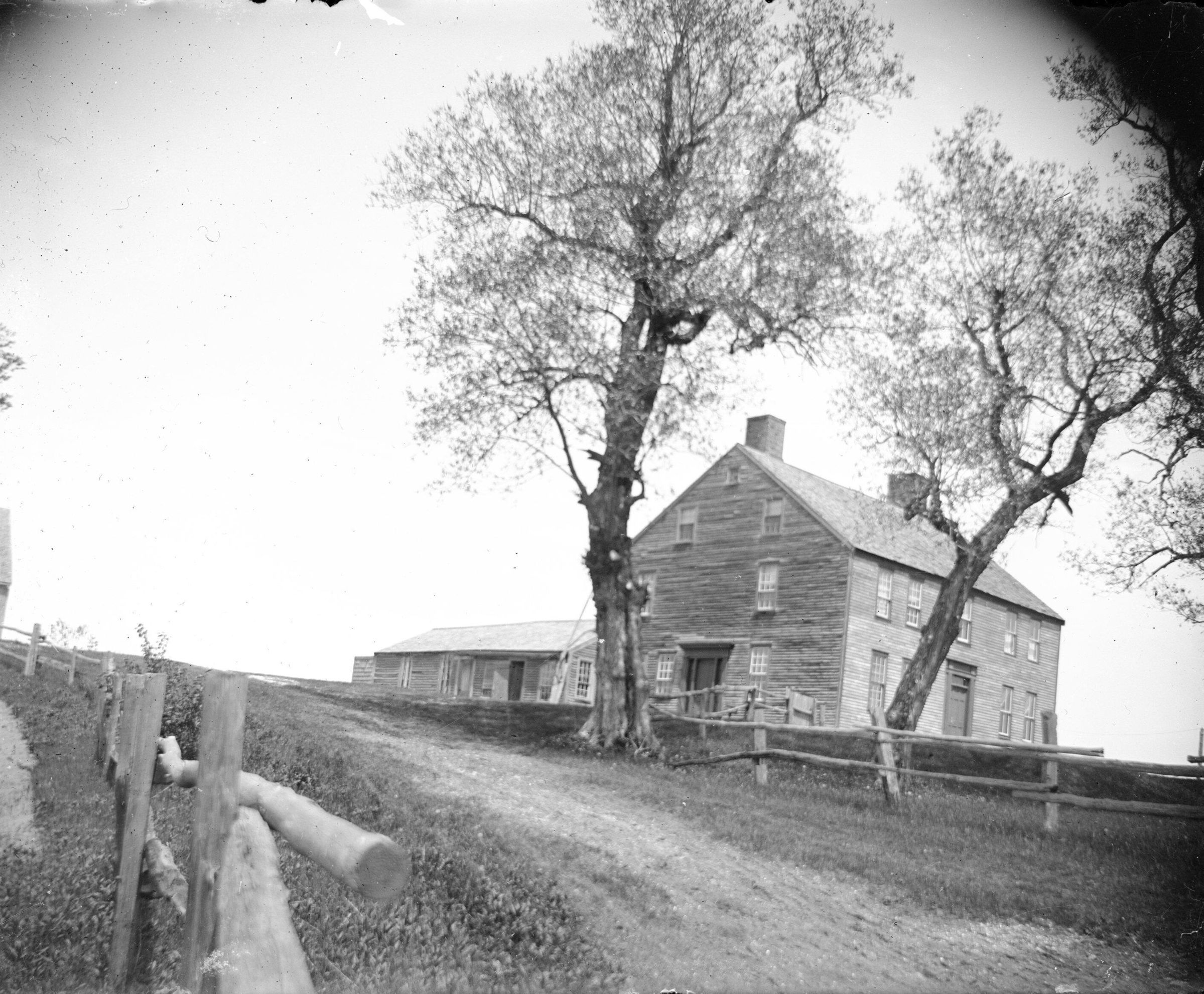 Glass plate negative photo of the Jordan Homestead, built by Judge Rishworth Jordan in 1740 at Jordan Point, Biddeford.