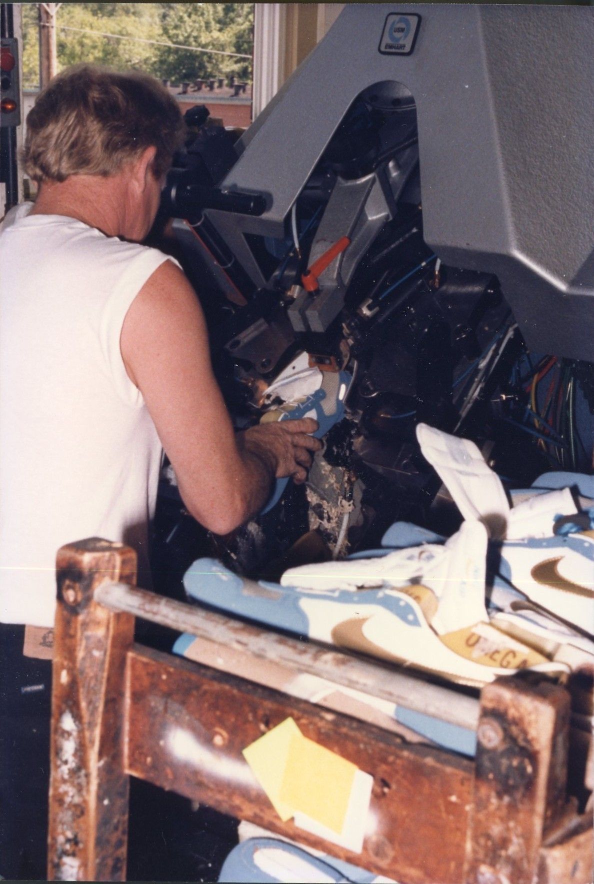 Color print photograph of Saco Nike Factory taken in July (or later), 1985. The Nike Factory located in Saco, Maine on Factory Island closed in November of 1985, about 8 years after it opened in 1978. The stated reason for closing was due to the increased labor cost and fringe benefits. After closing multiple American factories Nike focused on importing from Asia. 500 employees worked at the Saco Nike Factory, before shutting down.