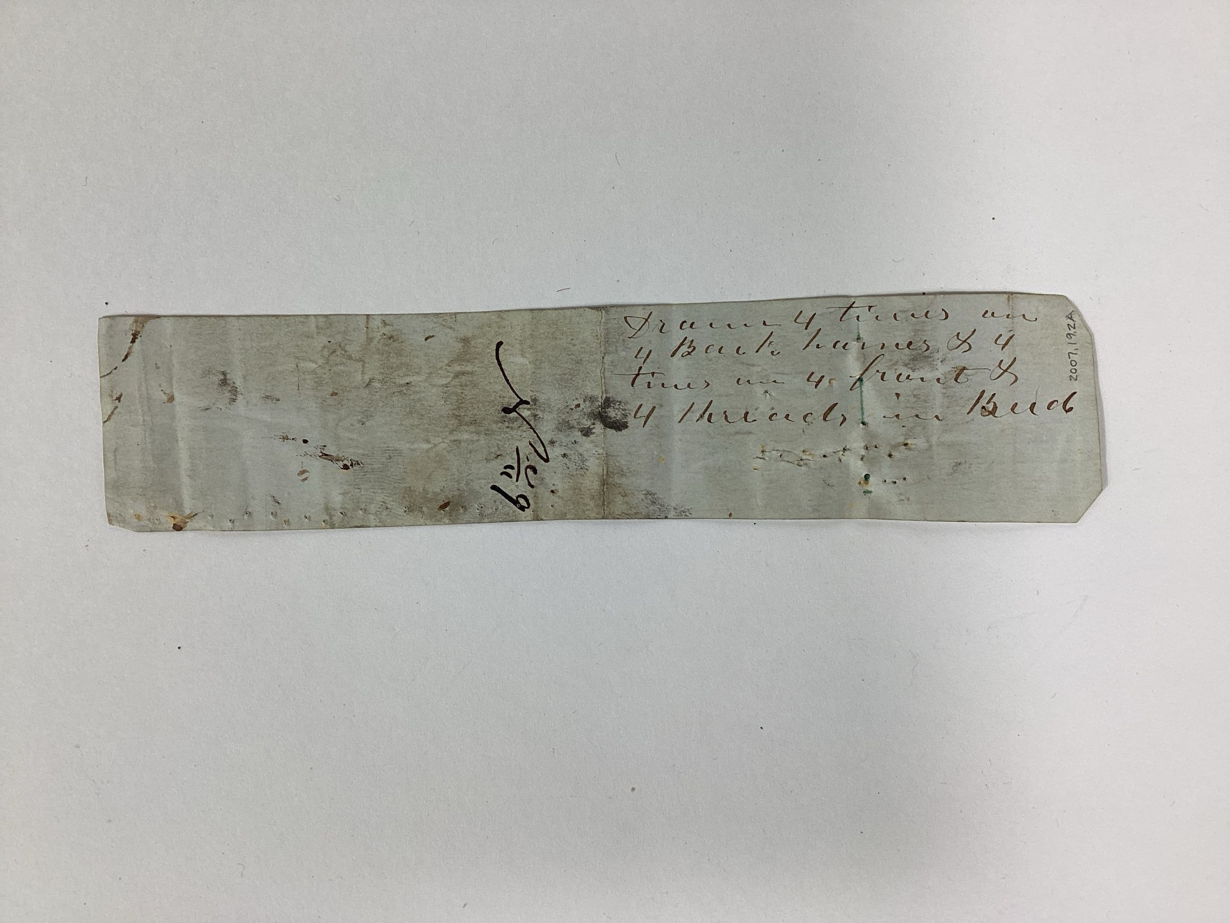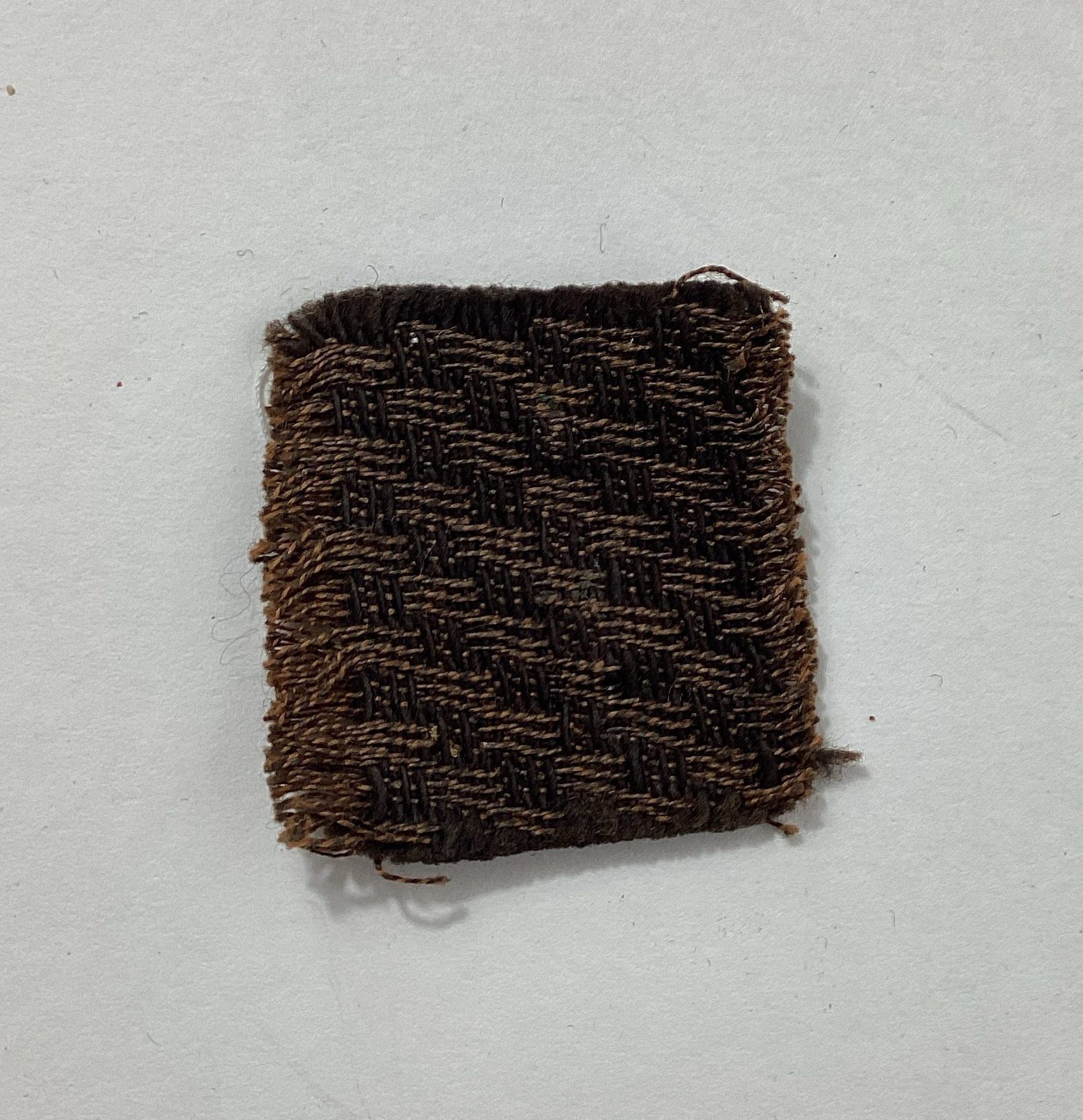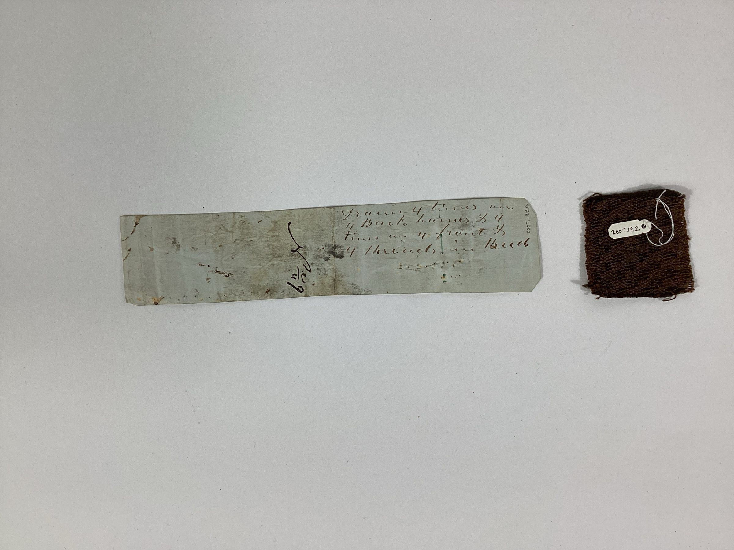 Sample of woven cotton cloth from the York Manufacturing Company with its accompanying weaving draft. Swatch of woven York Mfg. cloth. Pattern is alternating light and dark rows.Dimensions