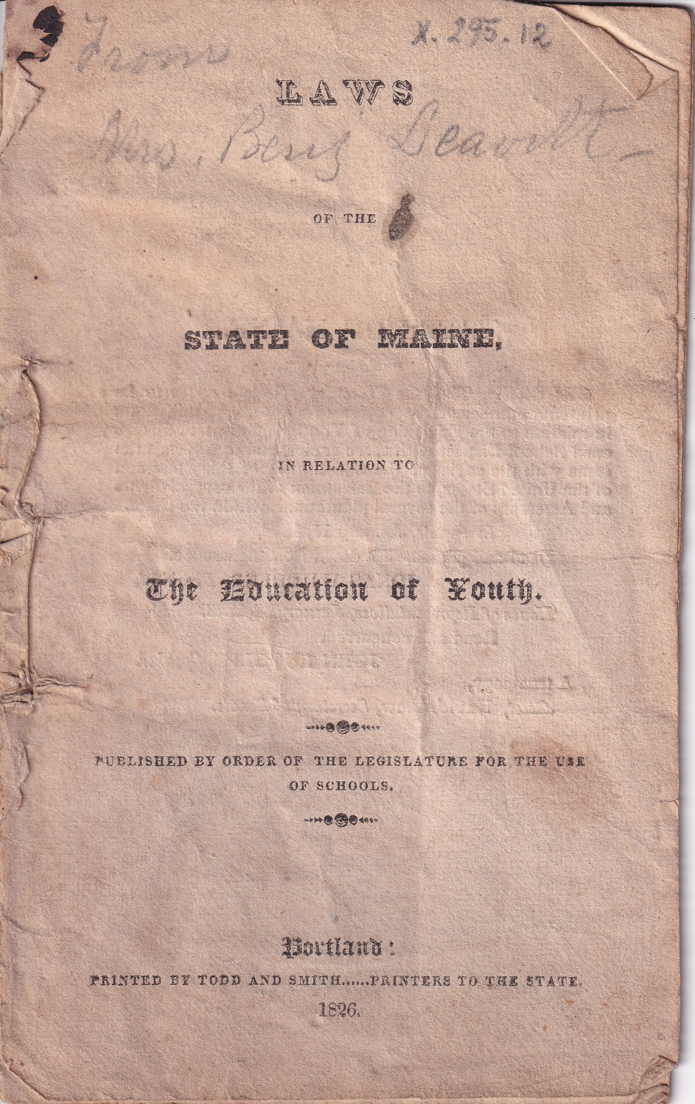 Portland, printed by Todd and Smith, printer to the state
