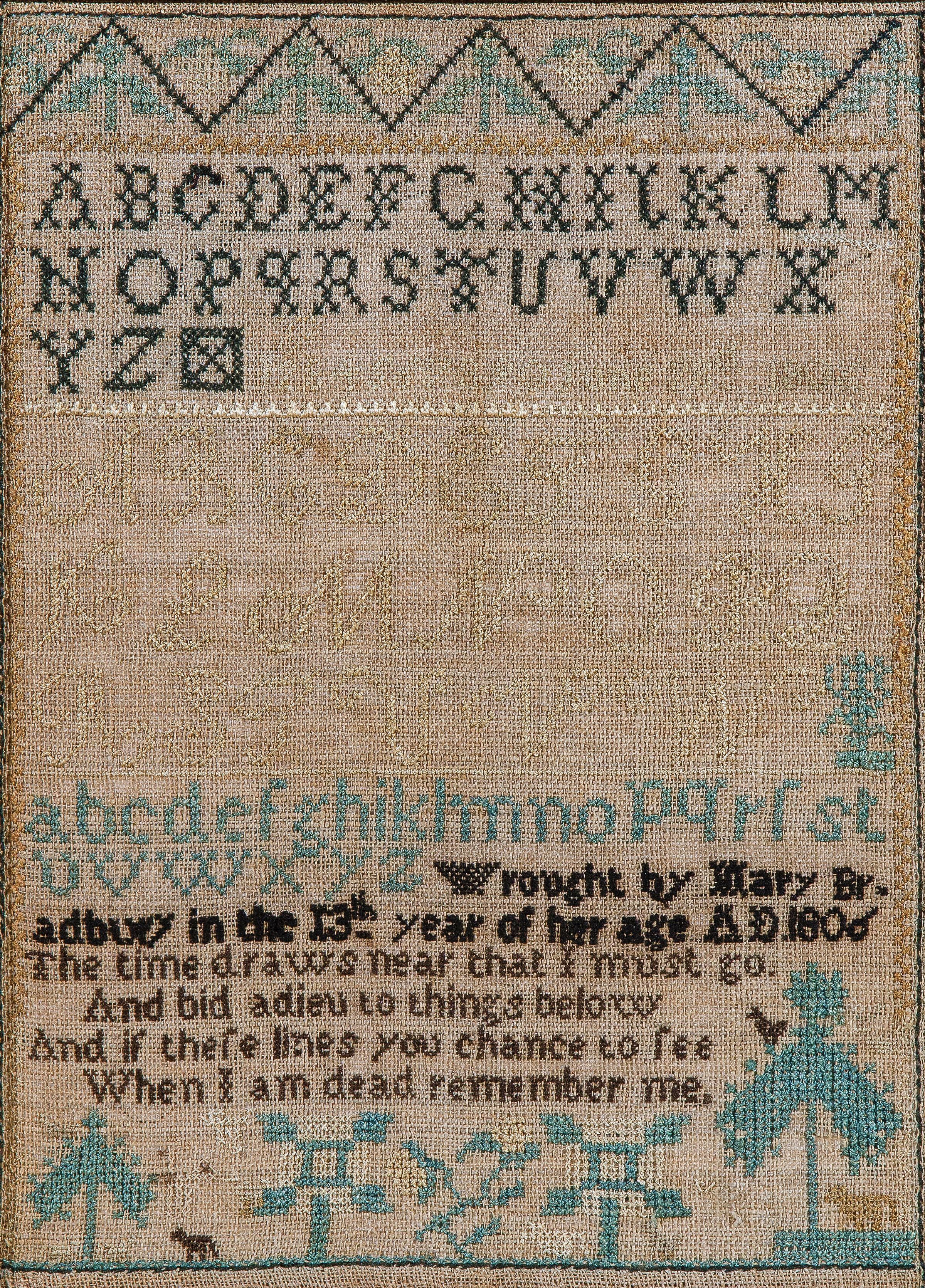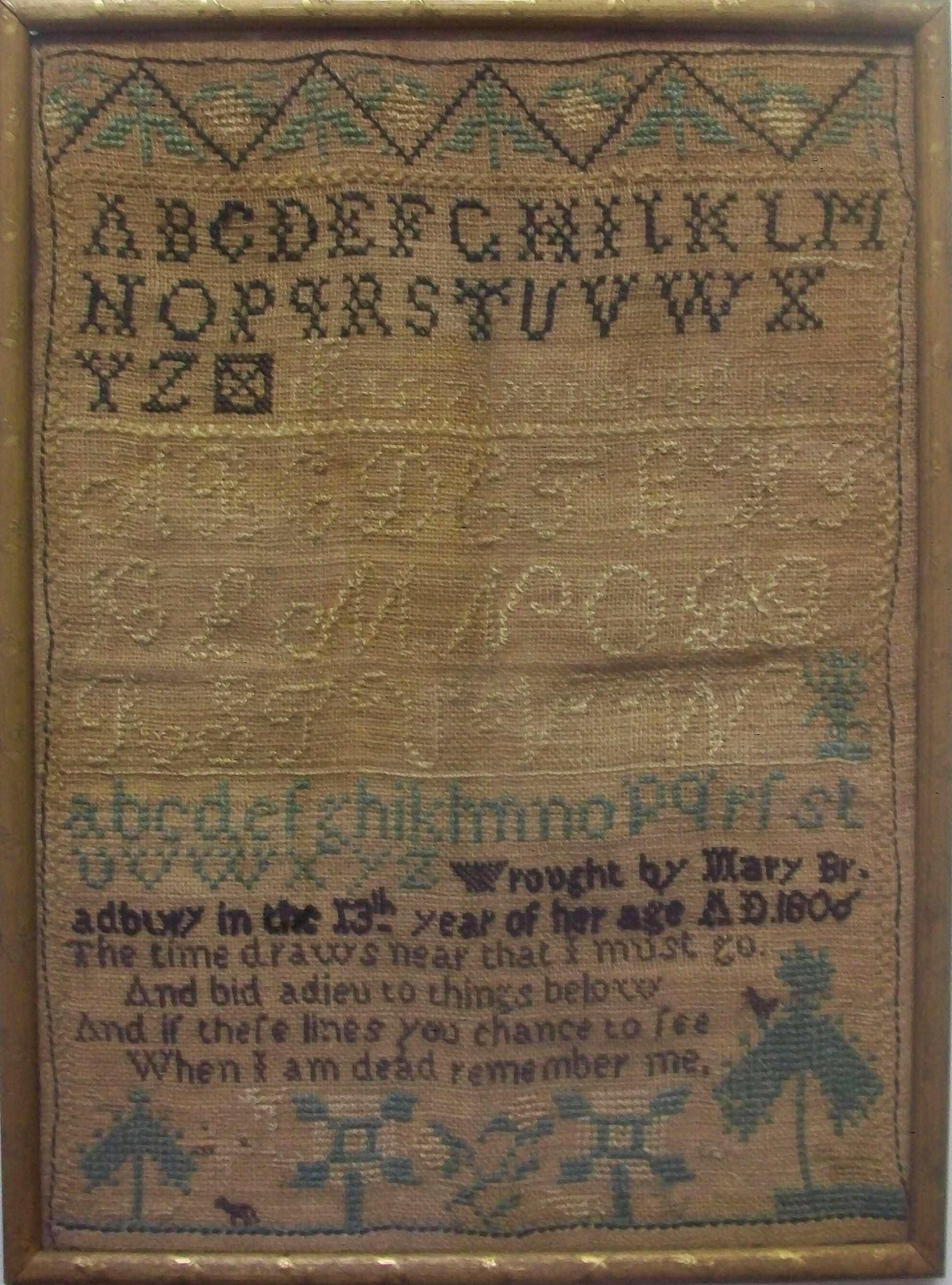 "Wrought by Mary Bradbury in the 13th year of her age AD 1806"