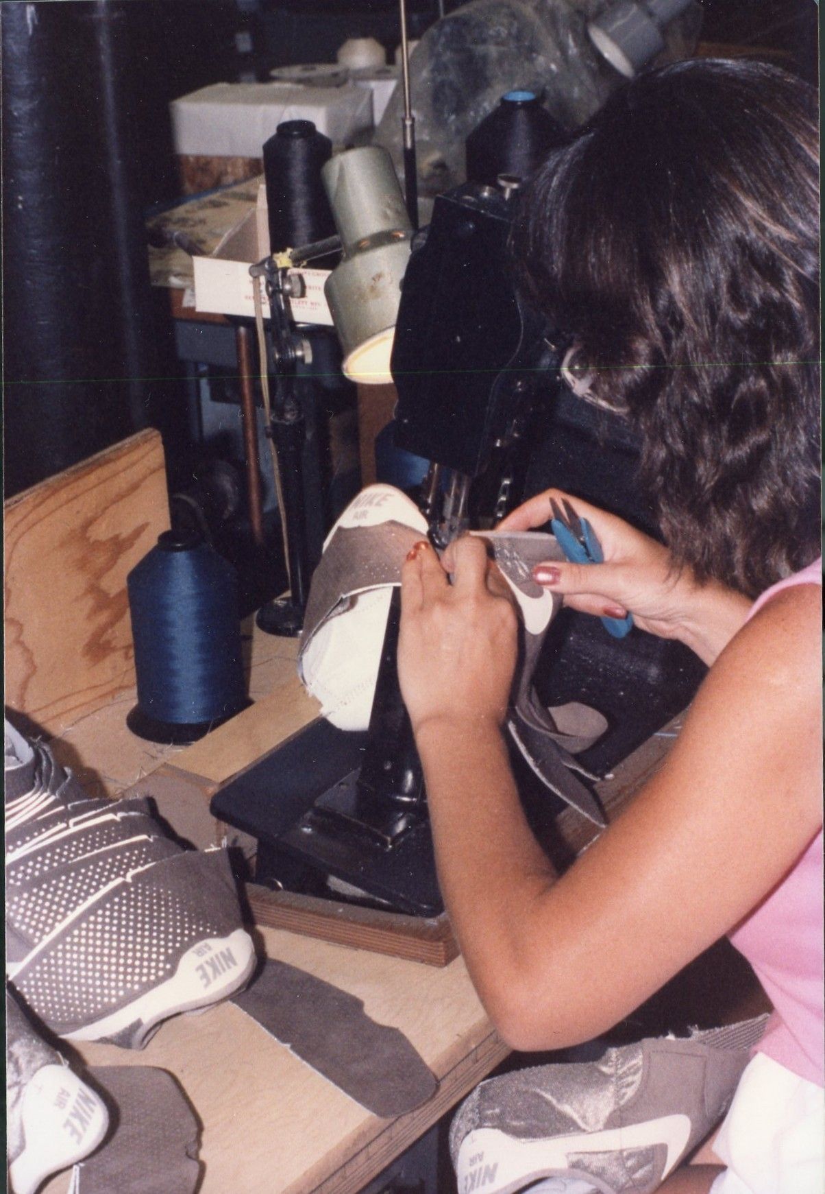 Color print photograph of Saco Nike Factory taken in July (or later), 1985. The Nike Factory located in Saco, Maine on Factory Island closed in November of 1985, about 8 years after it opened in 1978. The stated reason for closing was due to the increased labor cost and fringe benefits. After closing multiple American factories Nike focused on importing from Asia. 500 employees worked at the Saco Nike Factory, before shutting down.