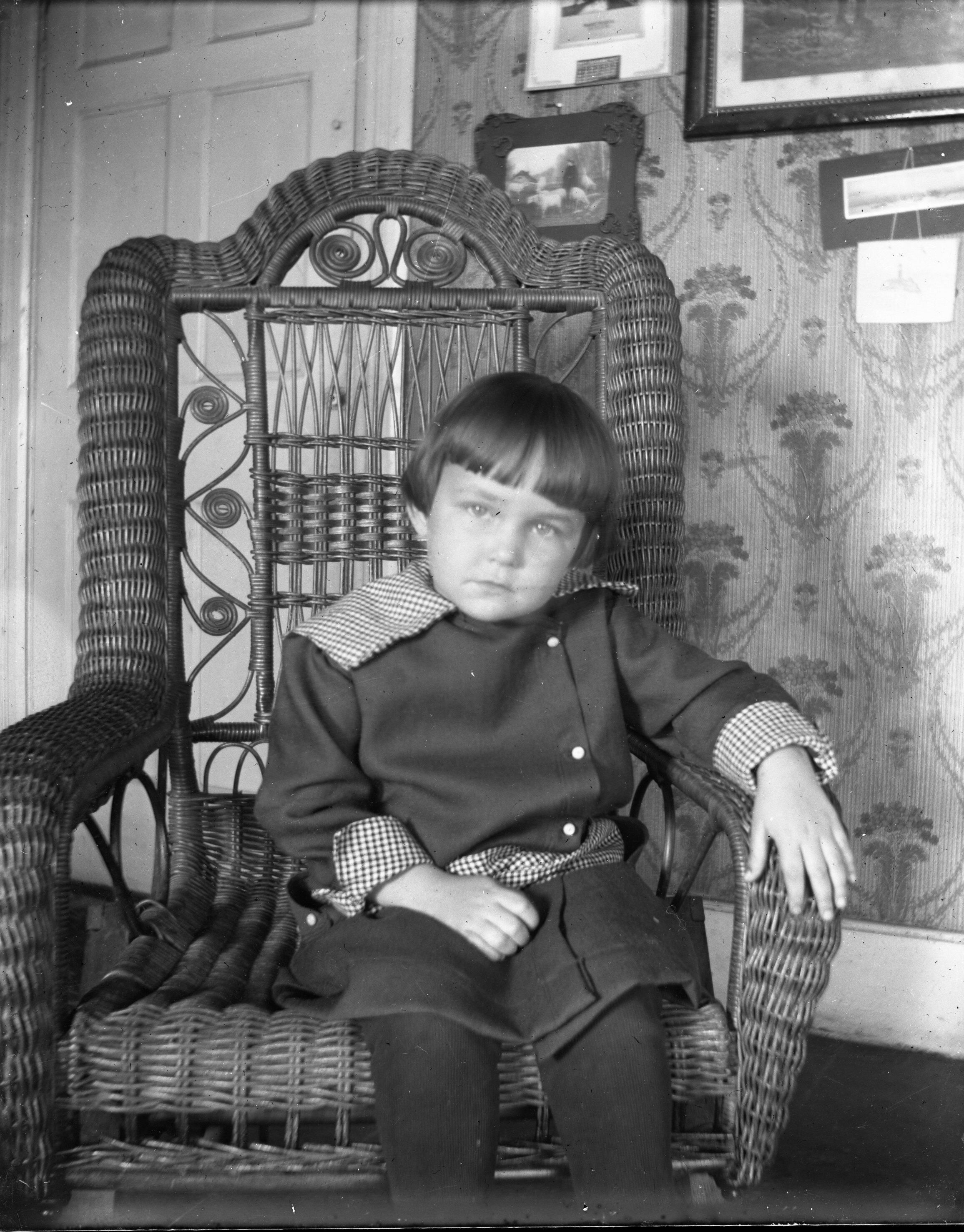 Glass plate negative photo of Gladys Arlene Hobbs (1913-1982) taken at 79 Watson Mill Road in Saco, ME, circa 1917.