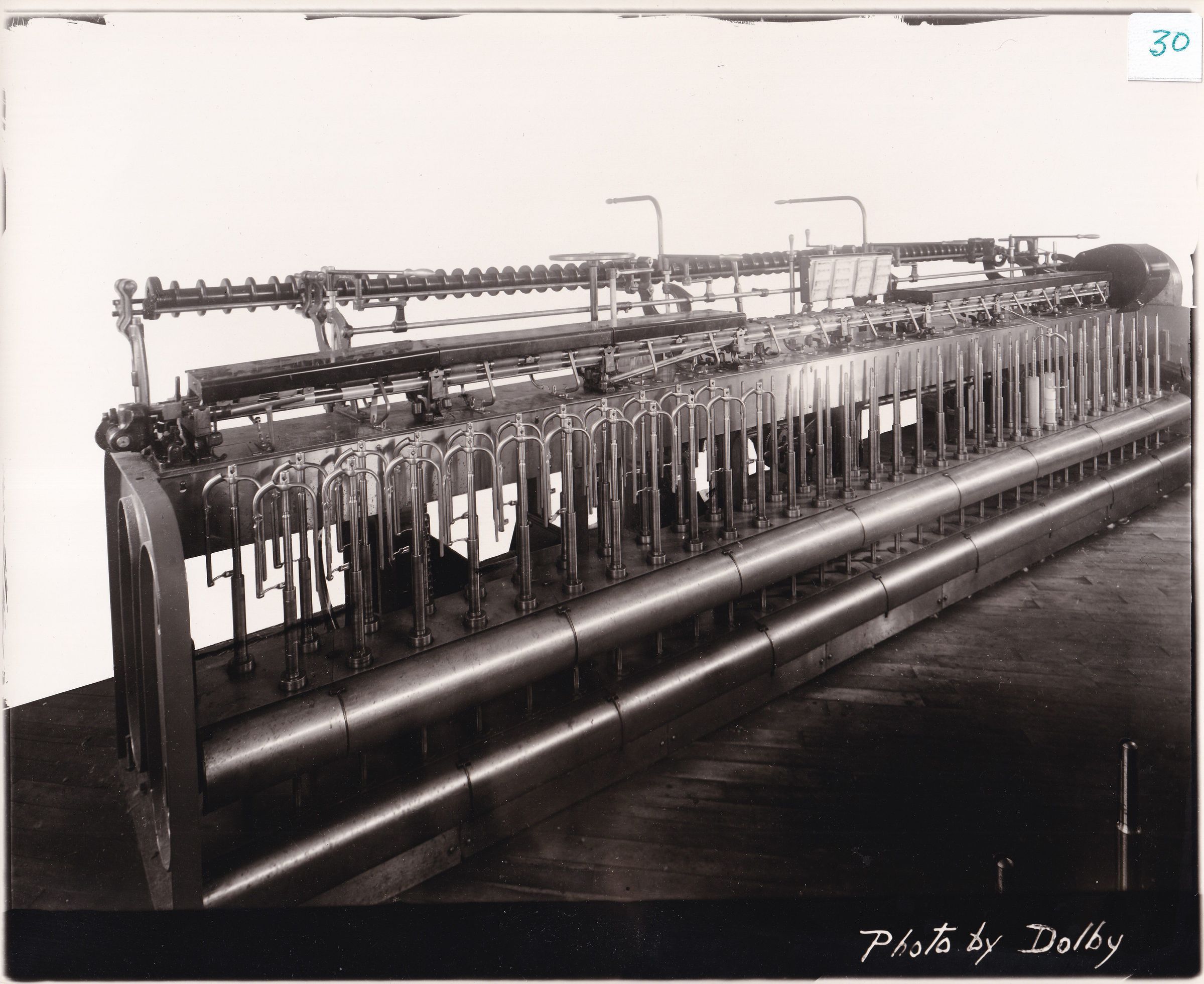 A empty spooler machine. The spoolers converted the sliver from the carding machines into fiber for the roving machines and beyond.Made/Created