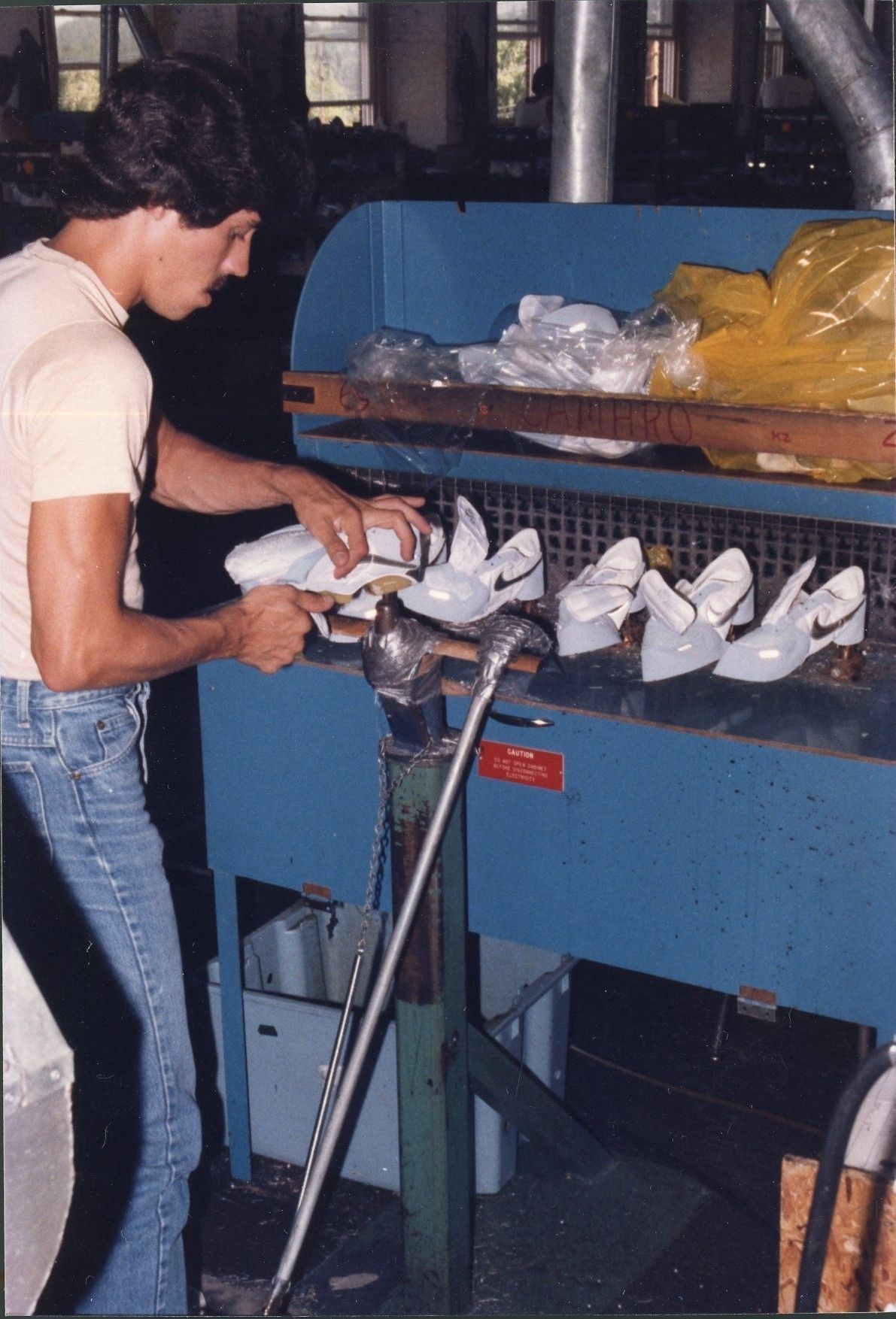 Color print photograph of Saco Nike Factory taken in July (or later), 1985. The Nike Factory located in Saco, Maine on Factory Island closed in November of 1985, about 8 years after it opened in 1978. The stated reason for closing was due to the increased labor cost and fringe benefits. After closing multiple American factories Nike focused on importing from Asia. 500 employees worked at the Saco Nike Factory, before shutting down.