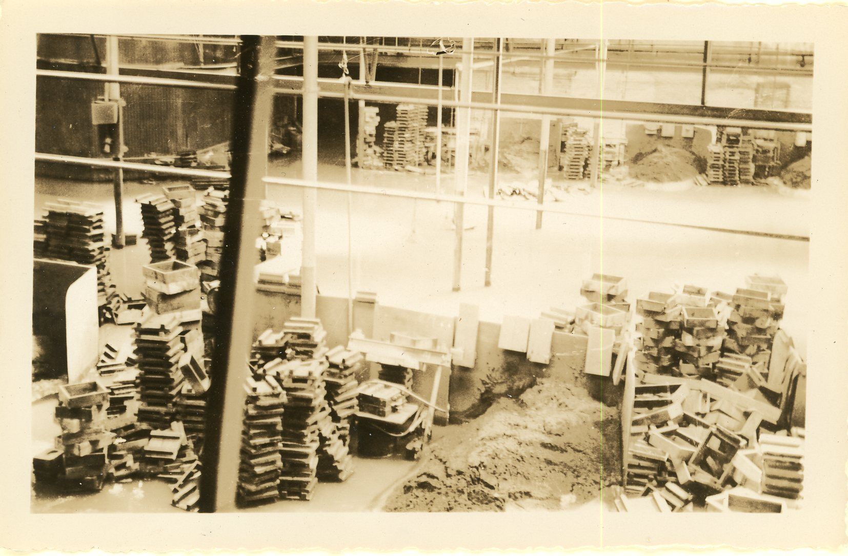 Black and white print photograph of Saco River flooding in Saco, Maine depicting flooding inside mill building. From the Sawyer House Collection.Dimensions