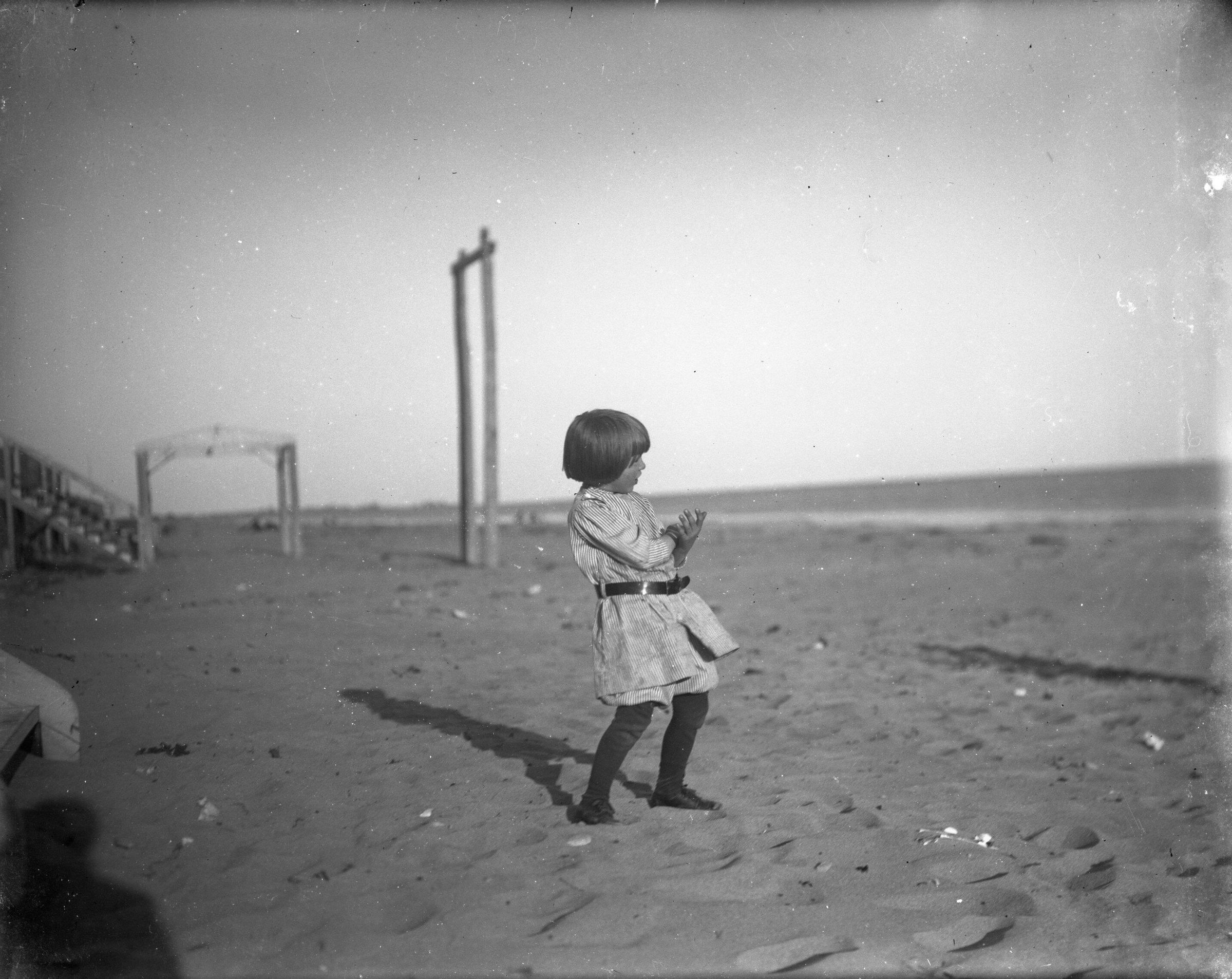 Glass plate negative photo of Herbert W. Bradbury at the beach.