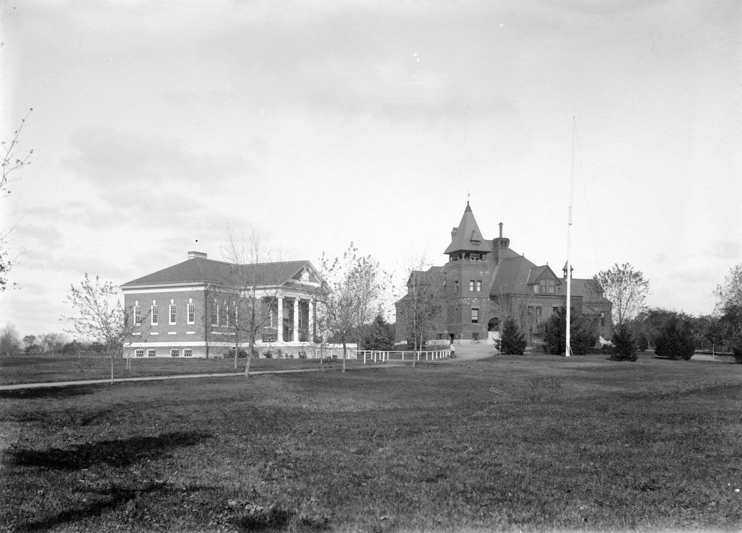 Glass plate negative photograph of Thornton Academy. Main building and Thornton Hall.