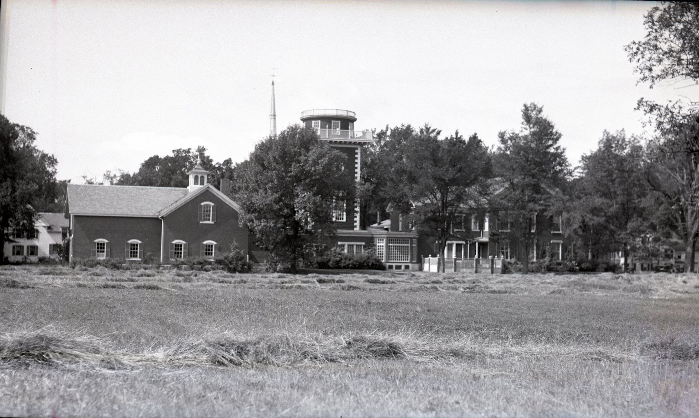 Photograph of the Deering Mansion, circa 1930s, taken by Frank Cutter Deering (1866-1939). In the foreground is "Hartley Field."