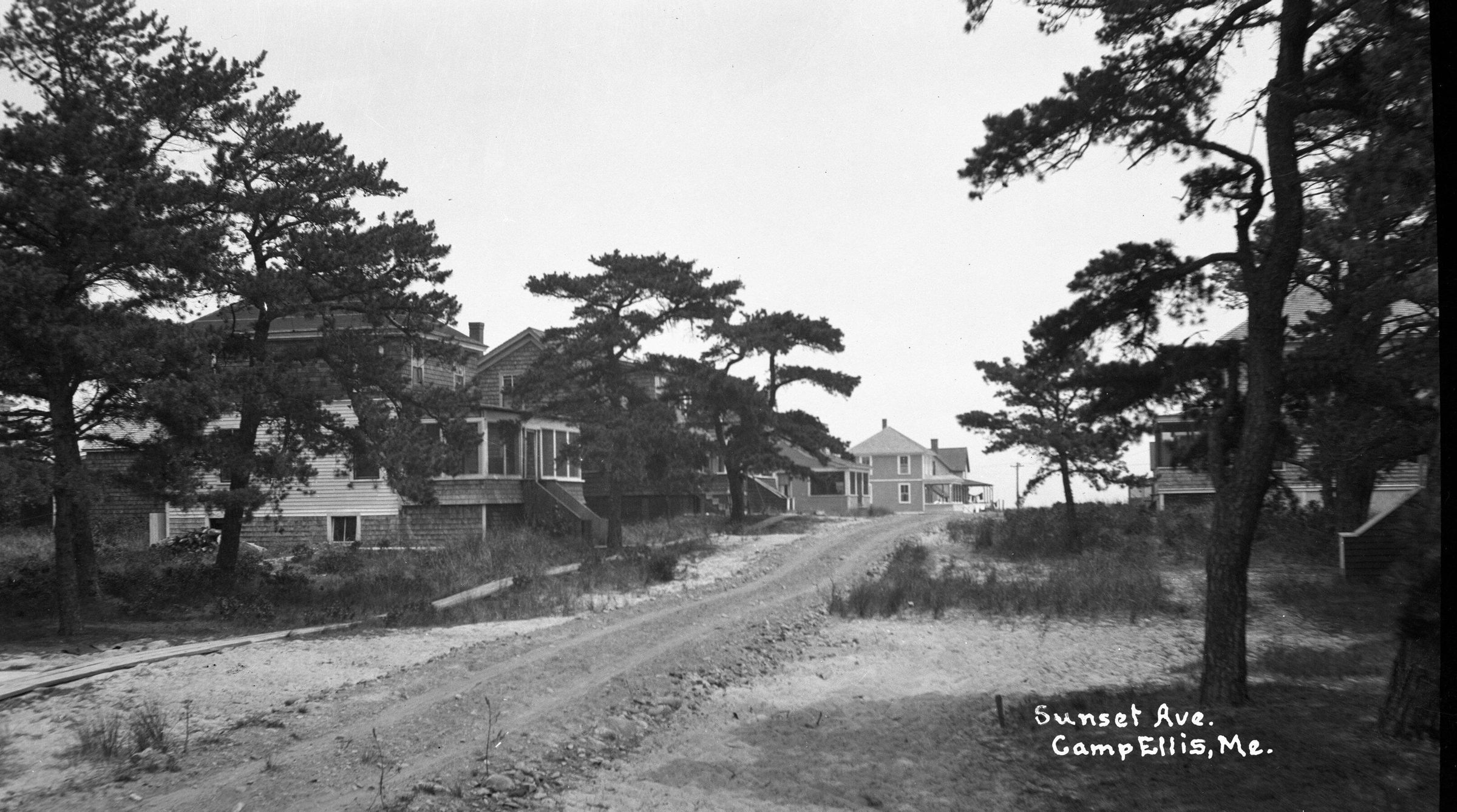 Negative print photo of Sunset Avenue at Camp Ellis, ME.