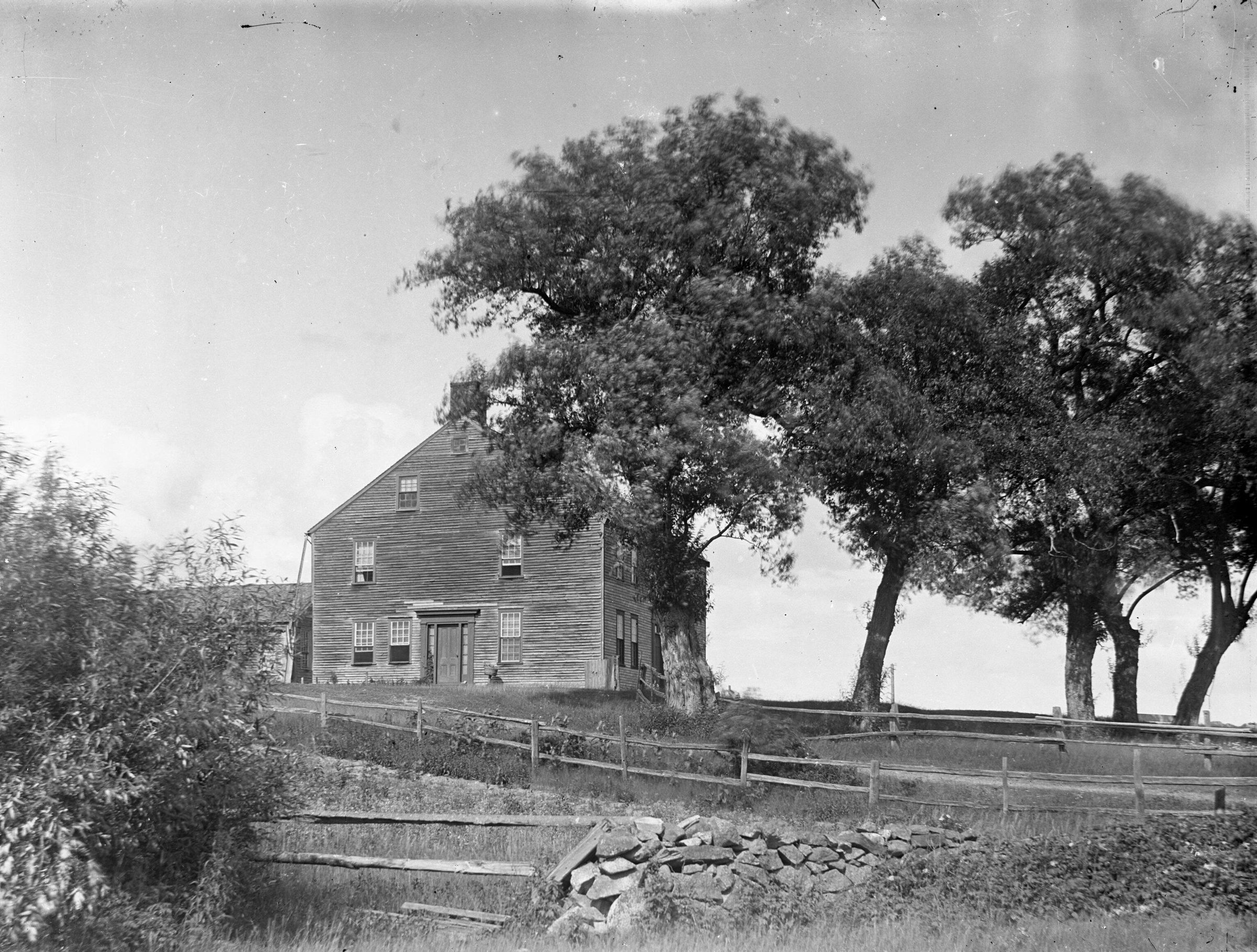 Glass plate negative photo of the Jordan Homestead, built by Judge Rishworth Jordan in 1740 at Jordan Point, Biddeford. Smaller 4x5 in plate.Made/Created