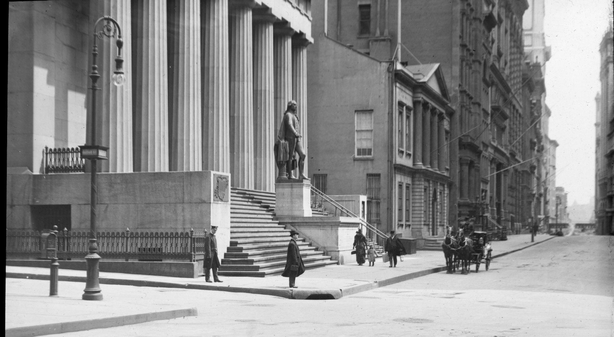 Glass lantern slide of the U.S. Sub-Treasury Building on Wall Street in New York.