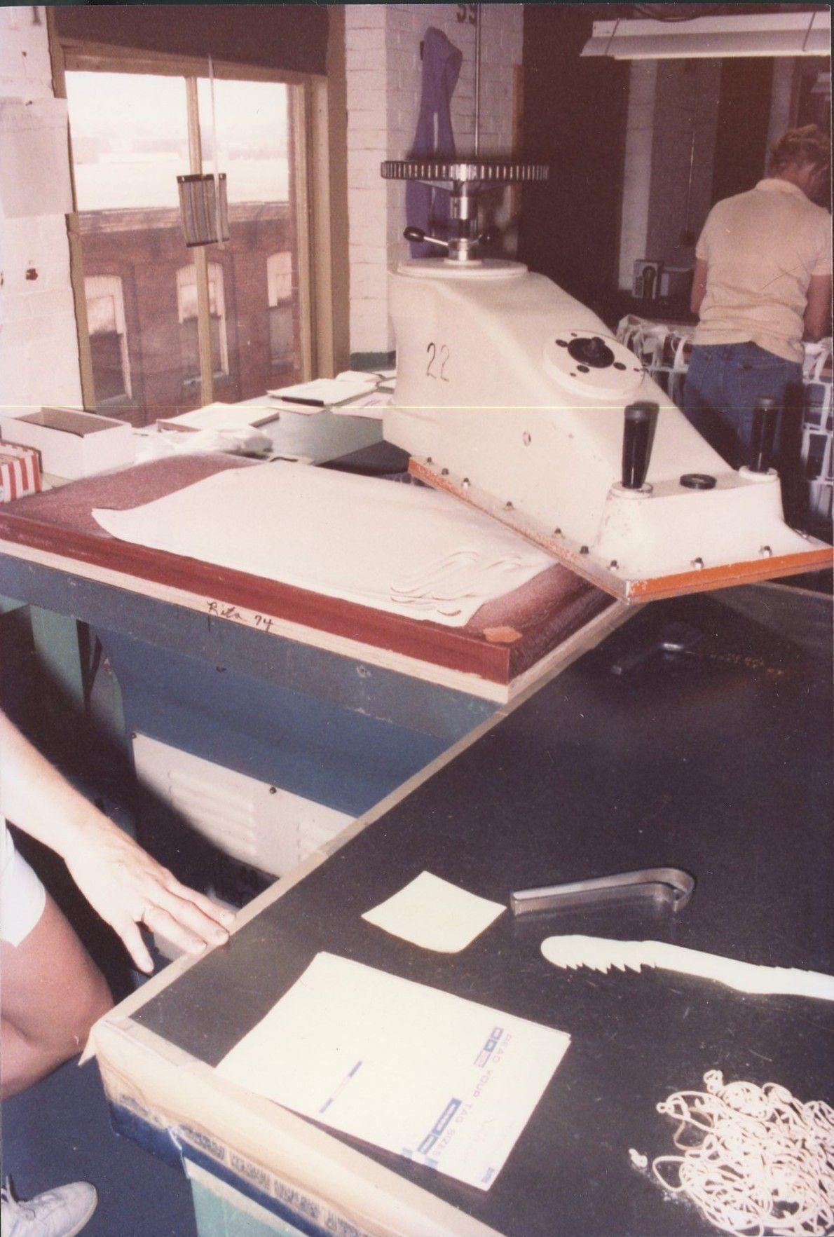 Color print photograph of Saco Nike Factory taken in July (or later), 1985. The Nike Factory located in Saco, Maine on Factory Island closed in November of 1985, about 8 years after it opened in 1978. The stated reason for closing was due to the increased labor cost and fringe benefits. After closing multiple American factories Nike focused on importing from Asia. 500 employees worked at the Saco Nike Factory, before shutting down.