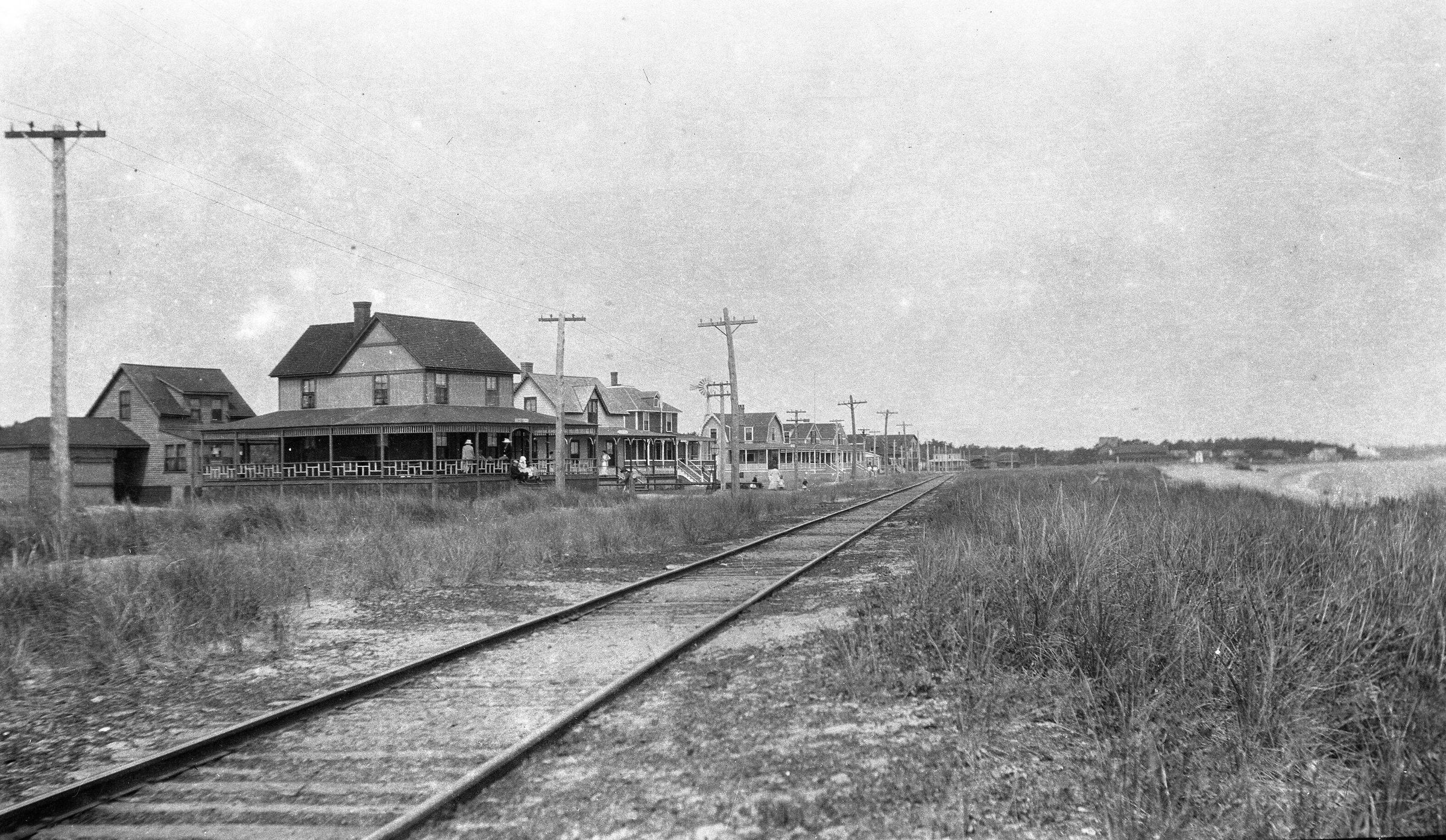 Negative print photo of the Dummy Train tracks on Surf Street in Camp Ellis, ME.Made/Created