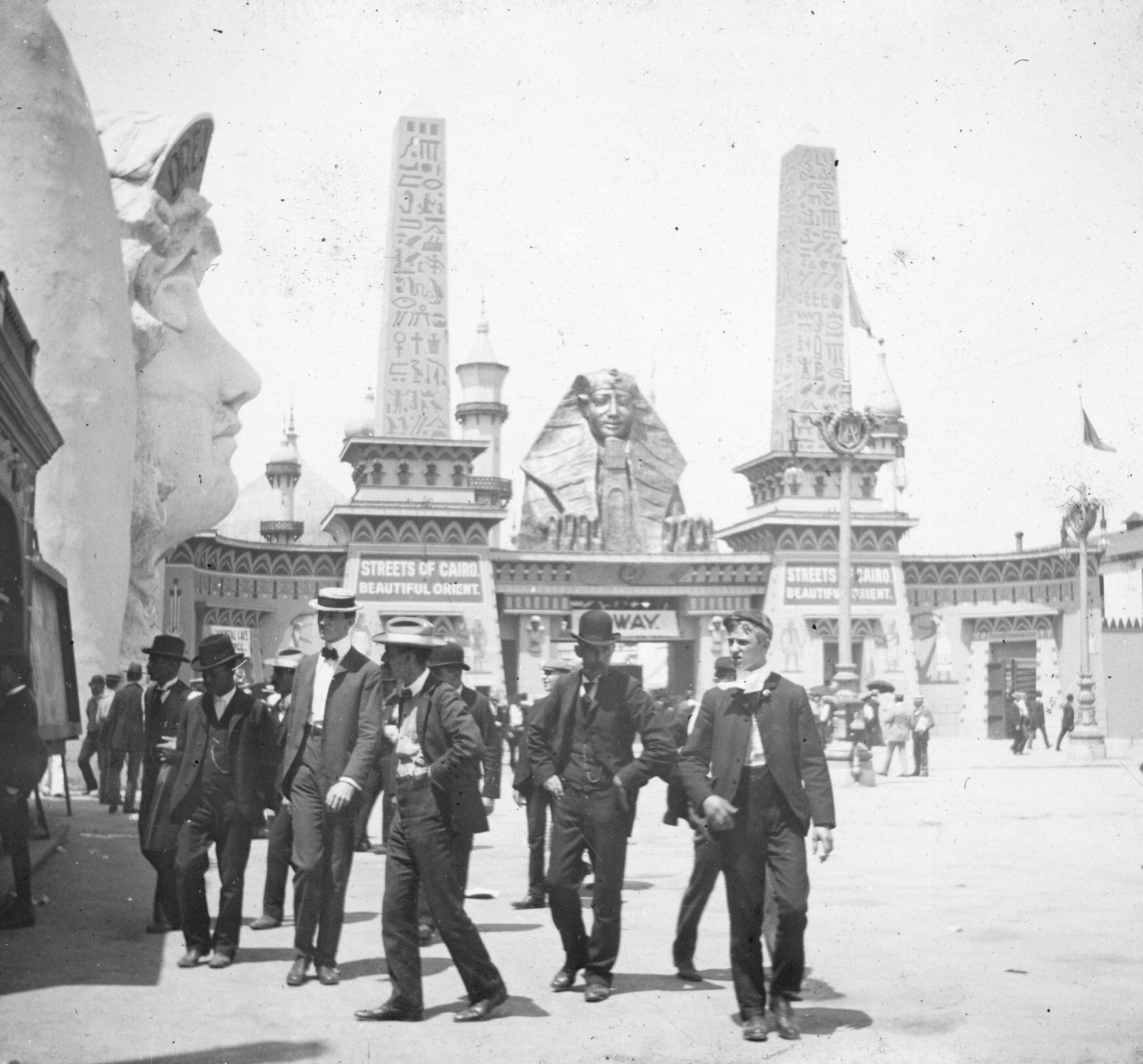 Glass lantern slide of the Streets of Cairo attraction at the Pan American Exposition in Buffalo, New York in 1901.