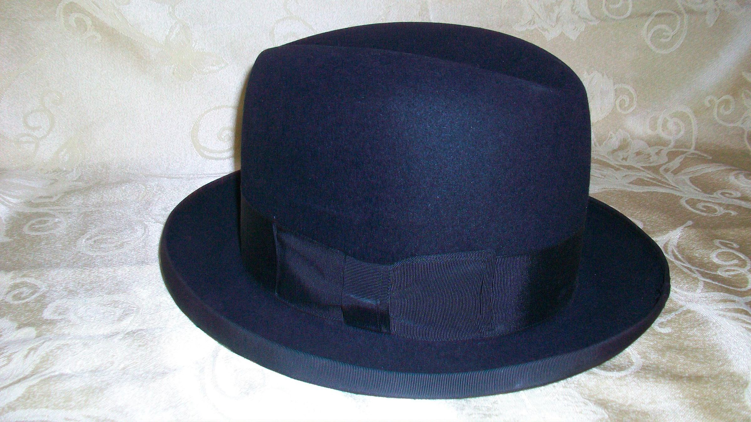 Fedora, black wool, hatband 2" grosgrain ribbon with bow on side.