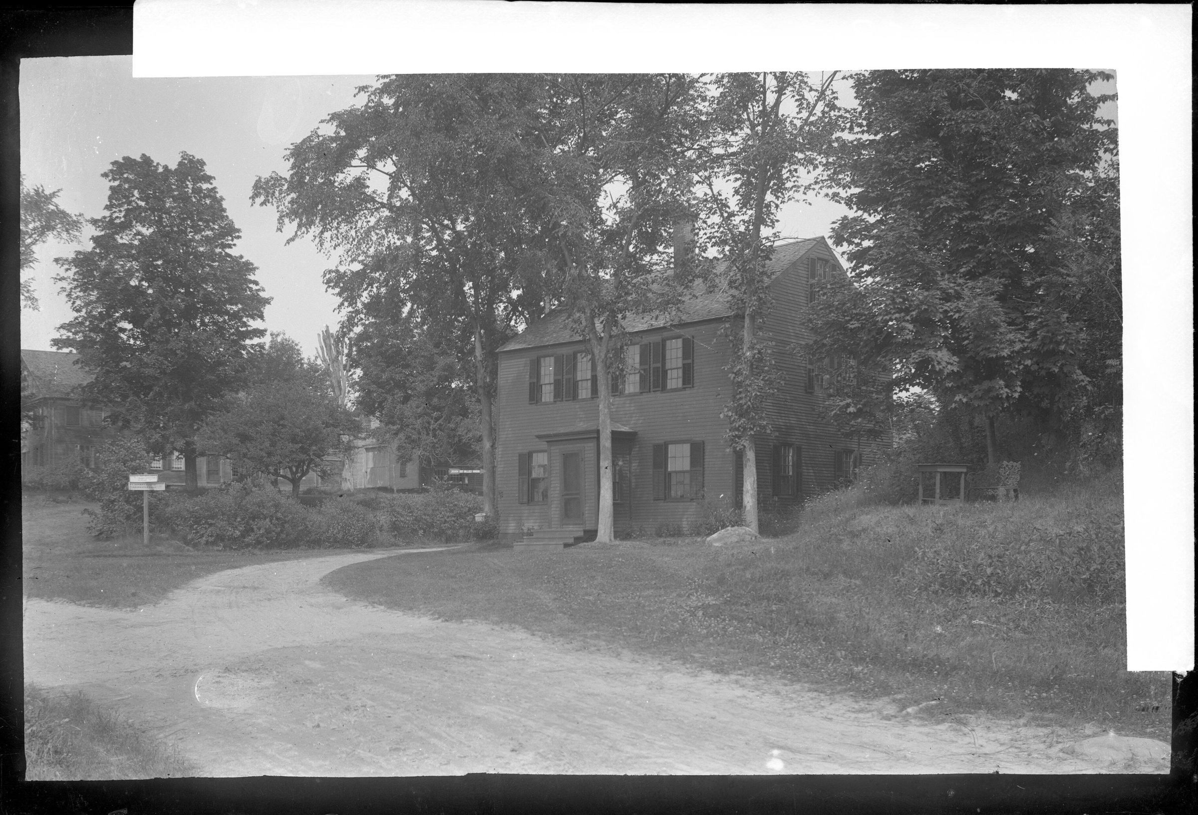 Glass plate negative photo of the Salmon Falls Library in Hollis, Maine. The library was founded by Kate Douglas Wiggin in 1911. The reverse side has a section of postcard pasted on. The photographer Bradbury was likely sizing these plates to create postcards. The same image of the "Village Library" appears on postcards sold as antique ephemera by various dealers.Made/Created