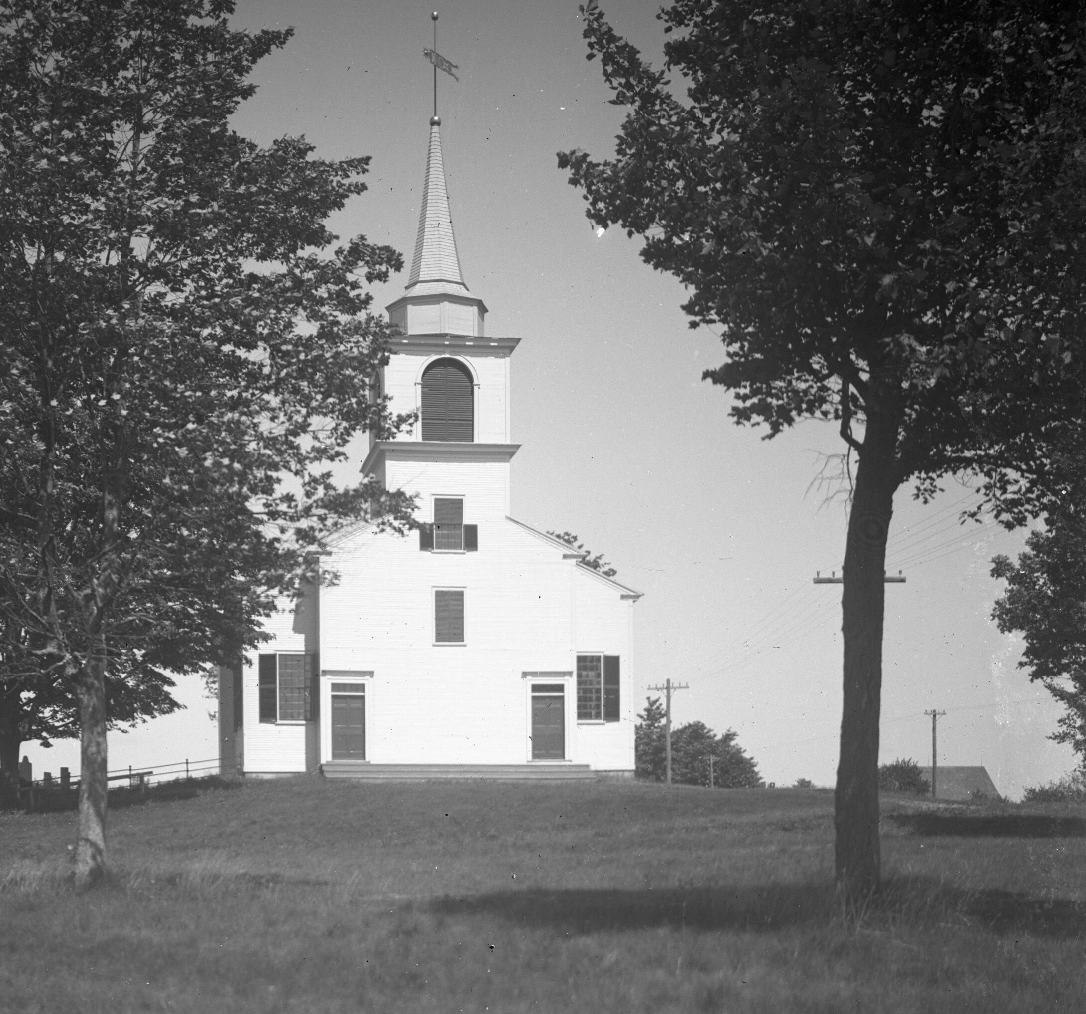Glass plate negative photo of Tory Hill Church in Buxton, ME.