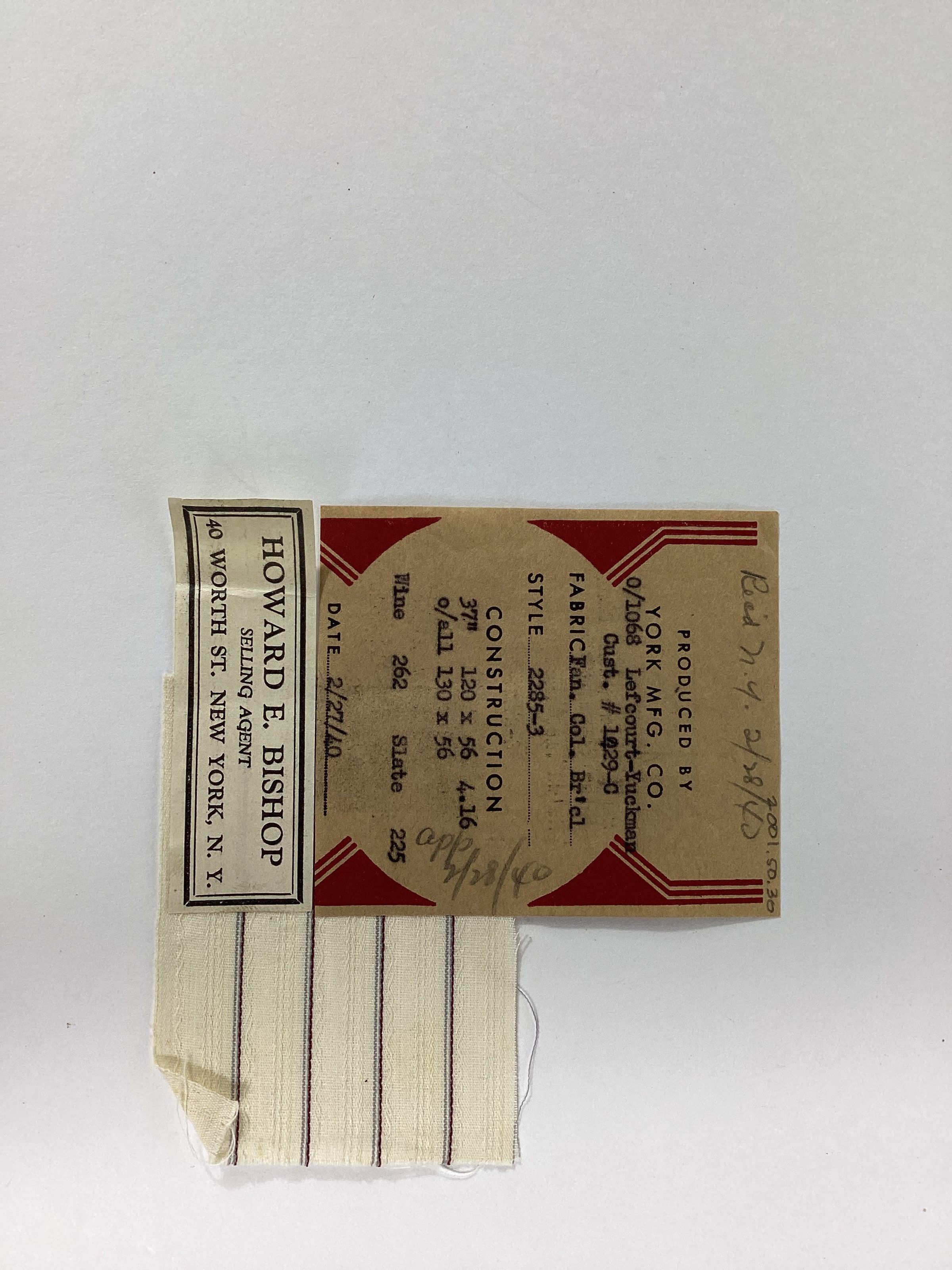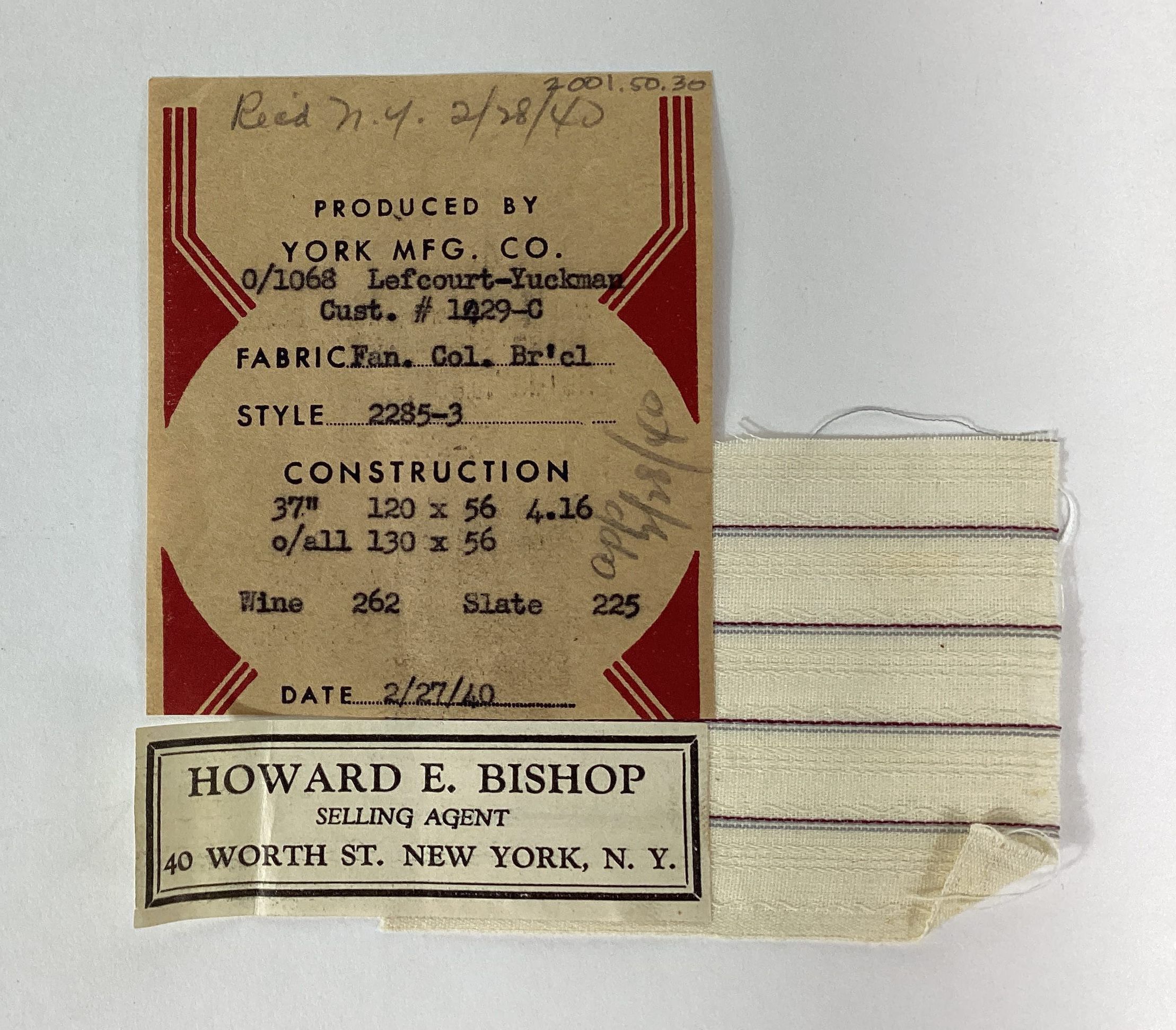York Mfg. Co. sample, 1940