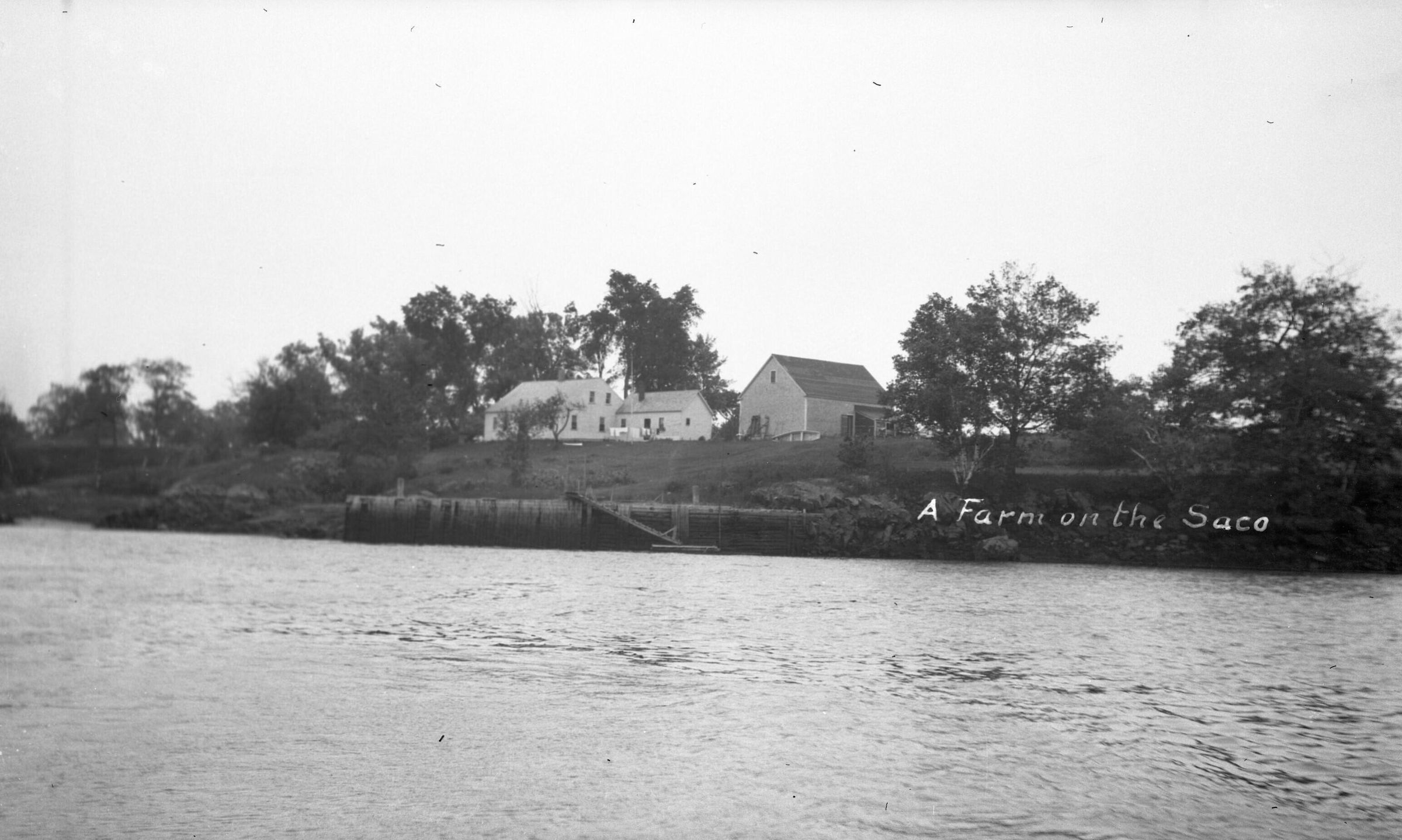 Negative print photo of an unidentified farm along the Saco River.