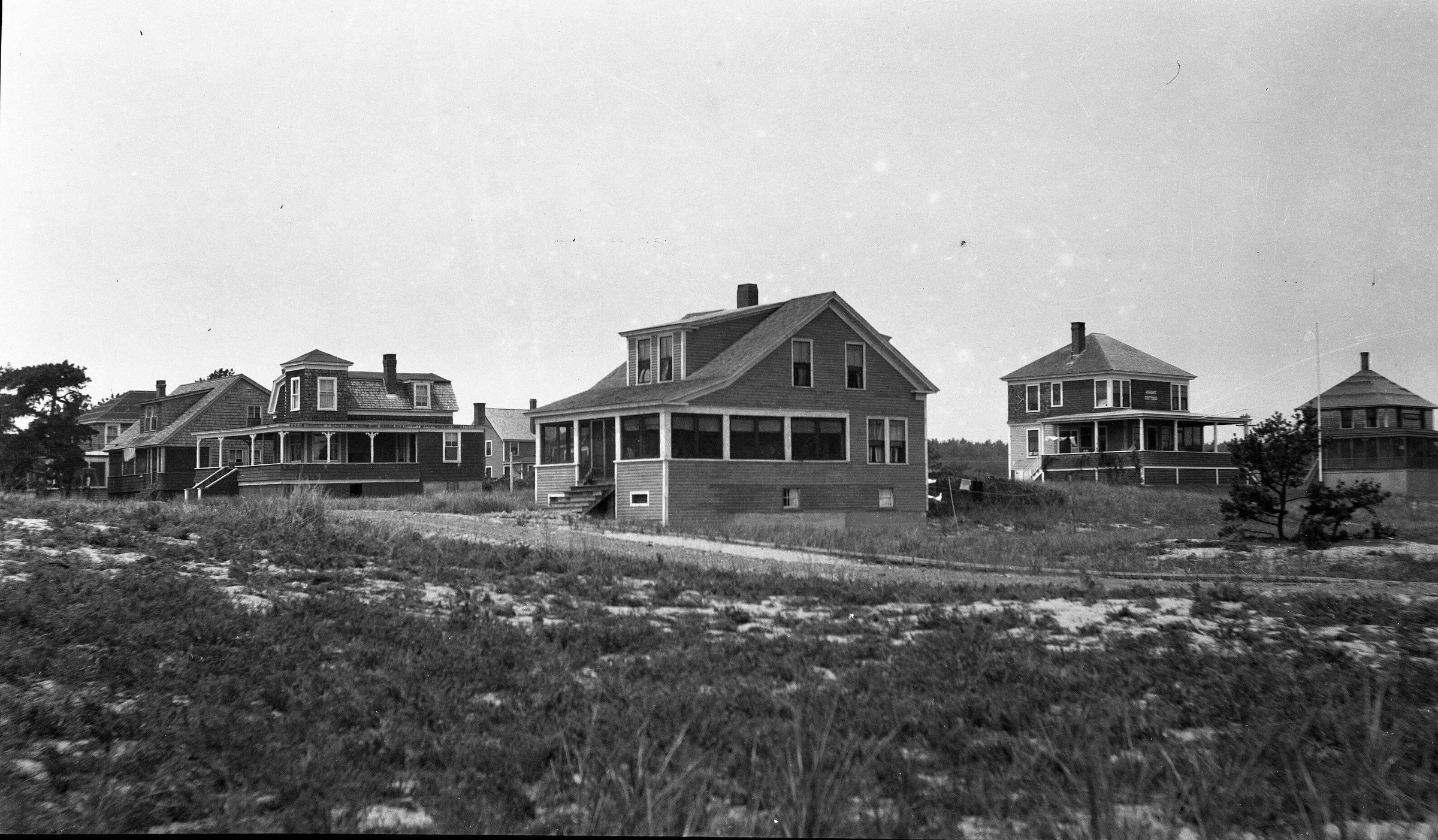 Negative print photo of vacation cottages at Camp Ellis, ME.