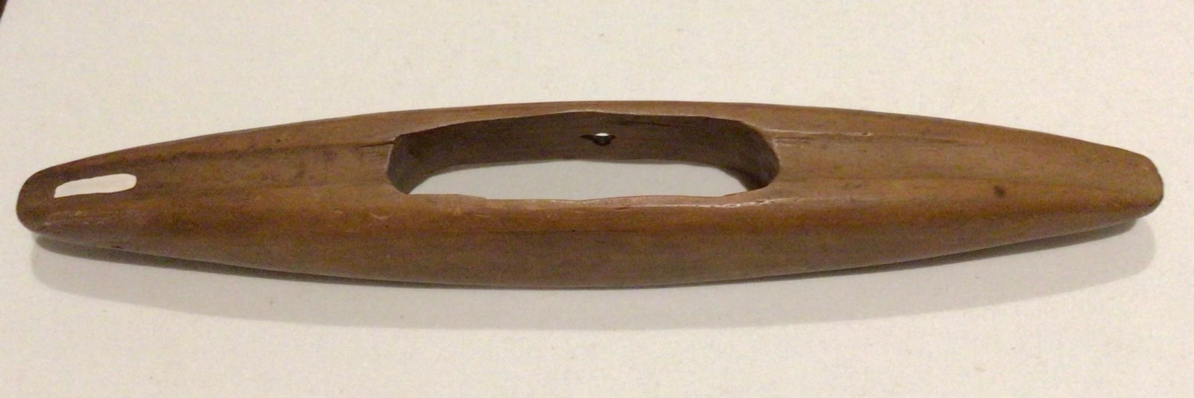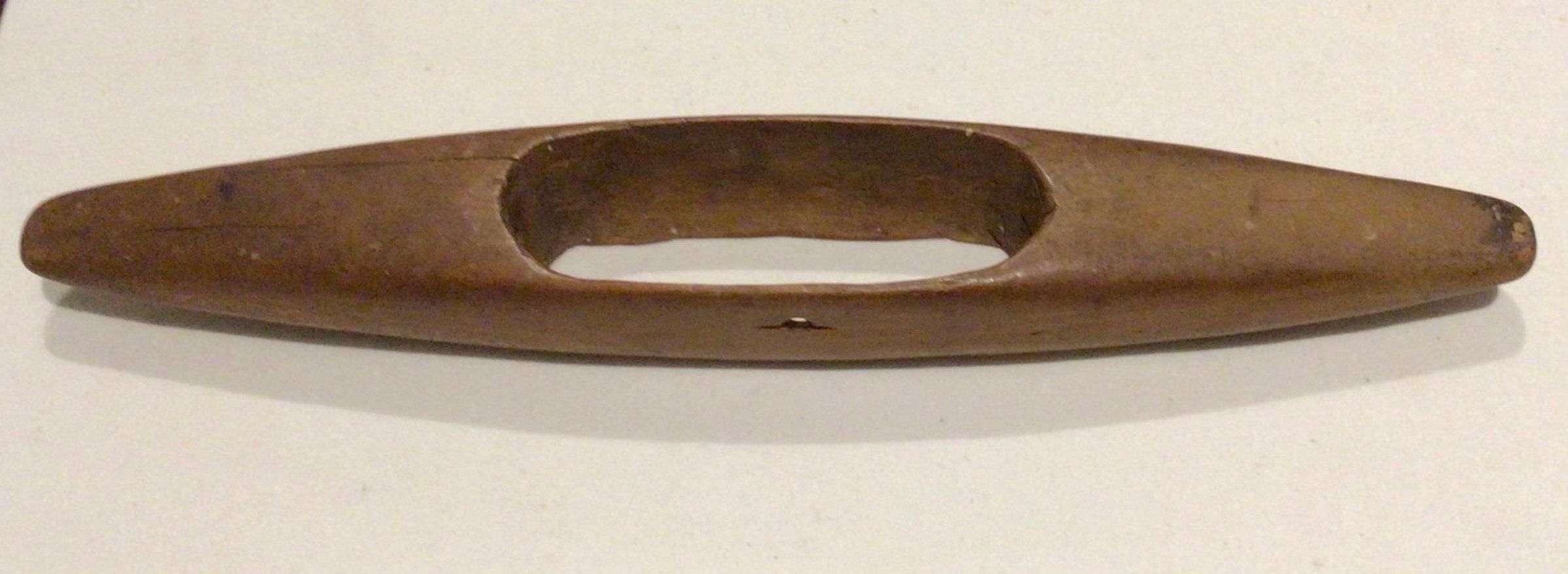 Wooden boat shuttle for weaving.