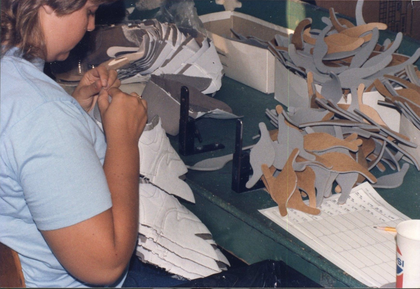 Color print photograph of Saco Nike Factory taken in July (or later), 1985. The Nike Factory located in Saco, Maine on Factory Island closed in November of 1985, about 8 years after it opened in 1978. The stated reason for closing was due to the increased labor cost and fringe benefits. After closing multiple American factories Nike focused on importing from Asia. 500 employees worked at the Saco Nike Factory, before shutting down.
