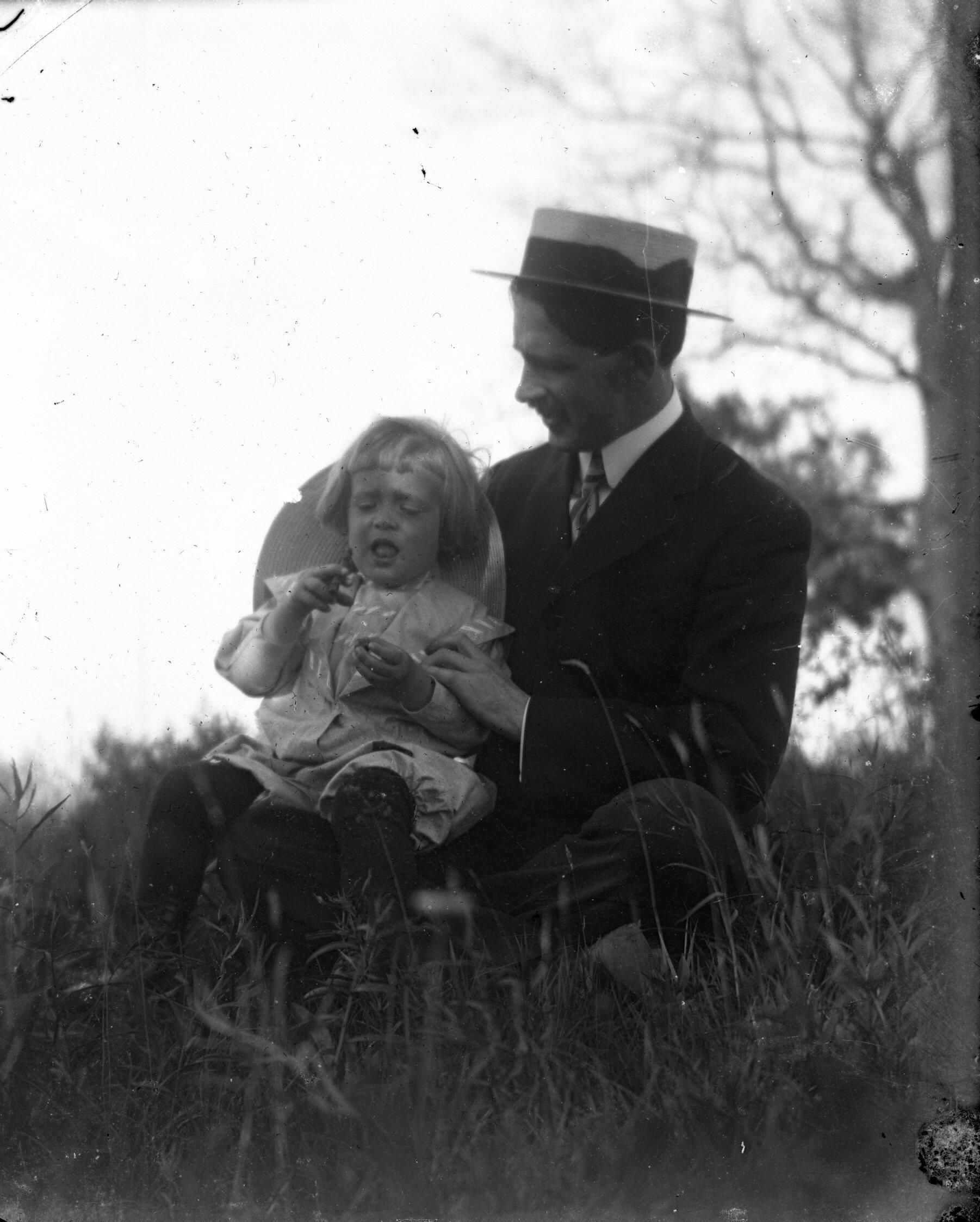 Glass plate negative photo of son and father: Herbert Woodworth Bradbury (1911-1916), and Gibeon Bradbury, Jr.