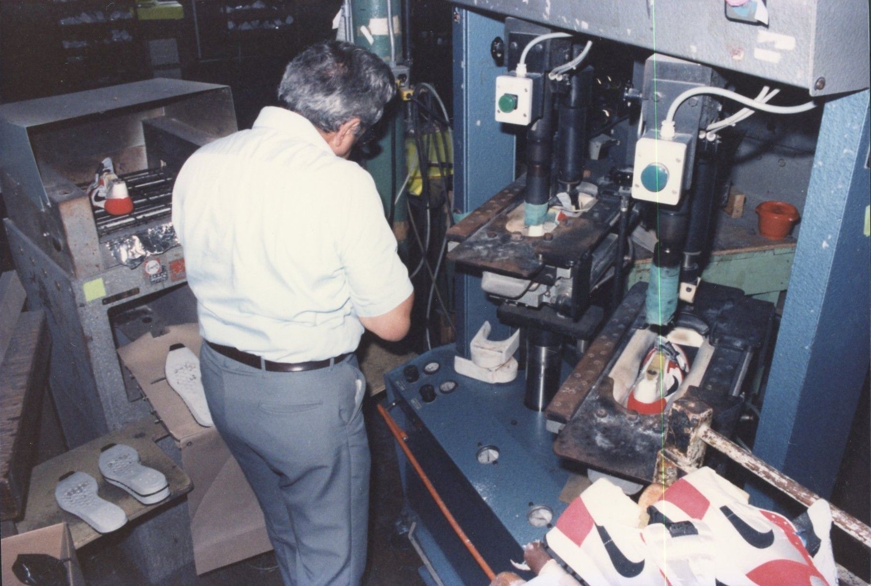 Color print photograph of Saco Nike Factory taken in July (or later), 1985. The Nike Factory located in Saco, Maine on Factory Island closed in November of 1985, about 8 years after it opened in 1978. The stated reason for closing was due to the increased labor cost and fringe benefits. After closing multiple American factories Nike focused on importing from Asia. 500 employees worked at the Saco Nike Factory, before shutting down.