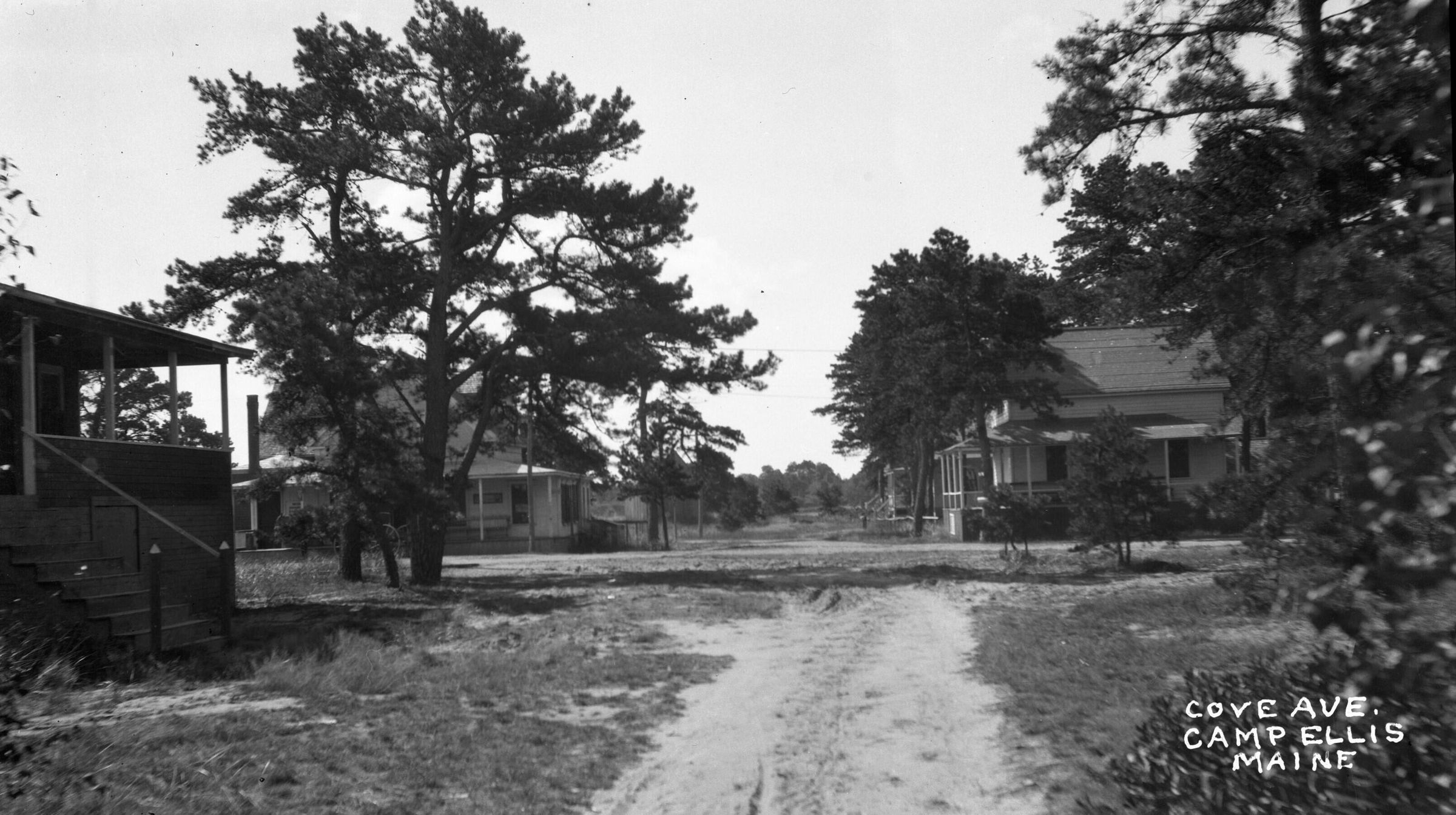 Negative print photo of Cove Avenue in Camp Ellis, ME.